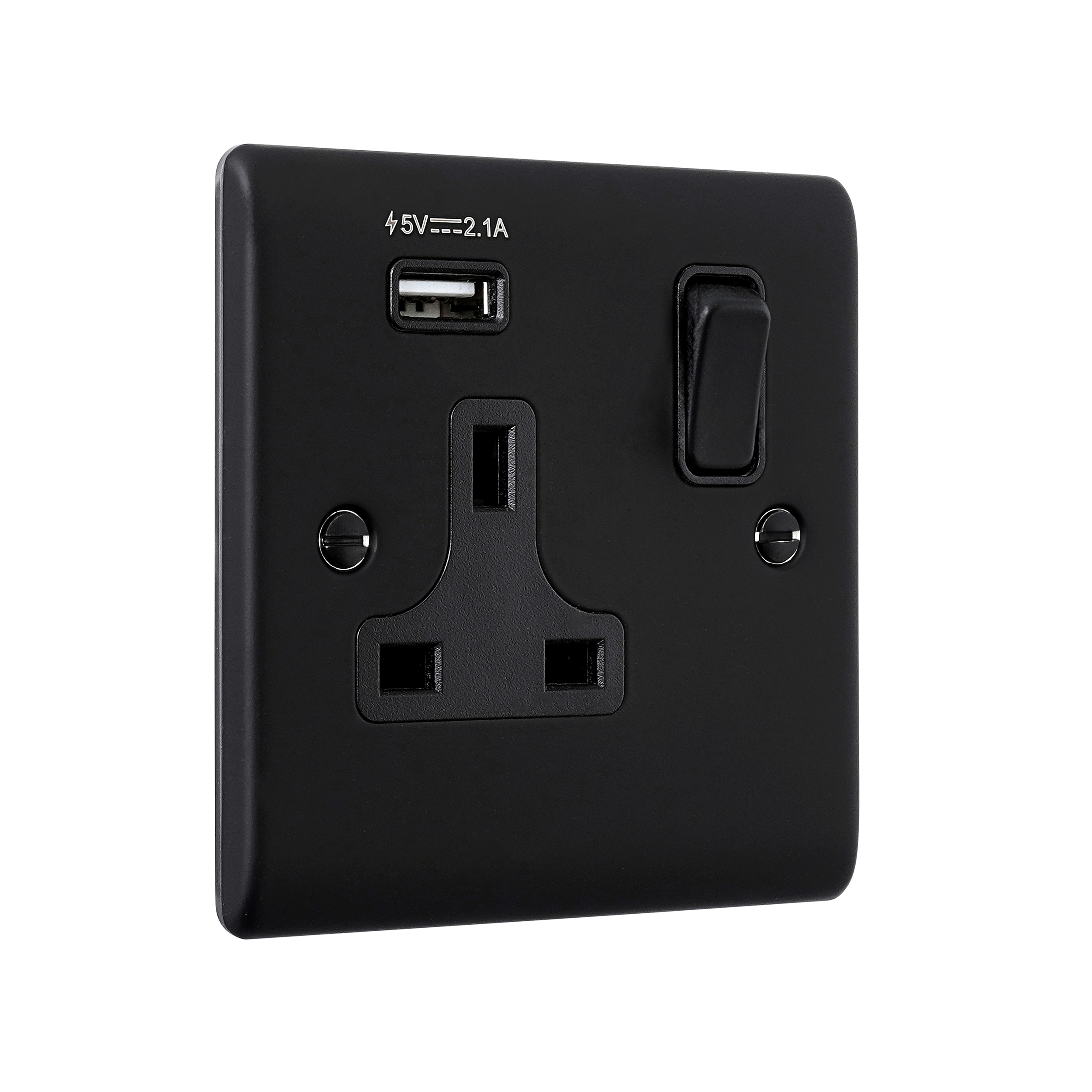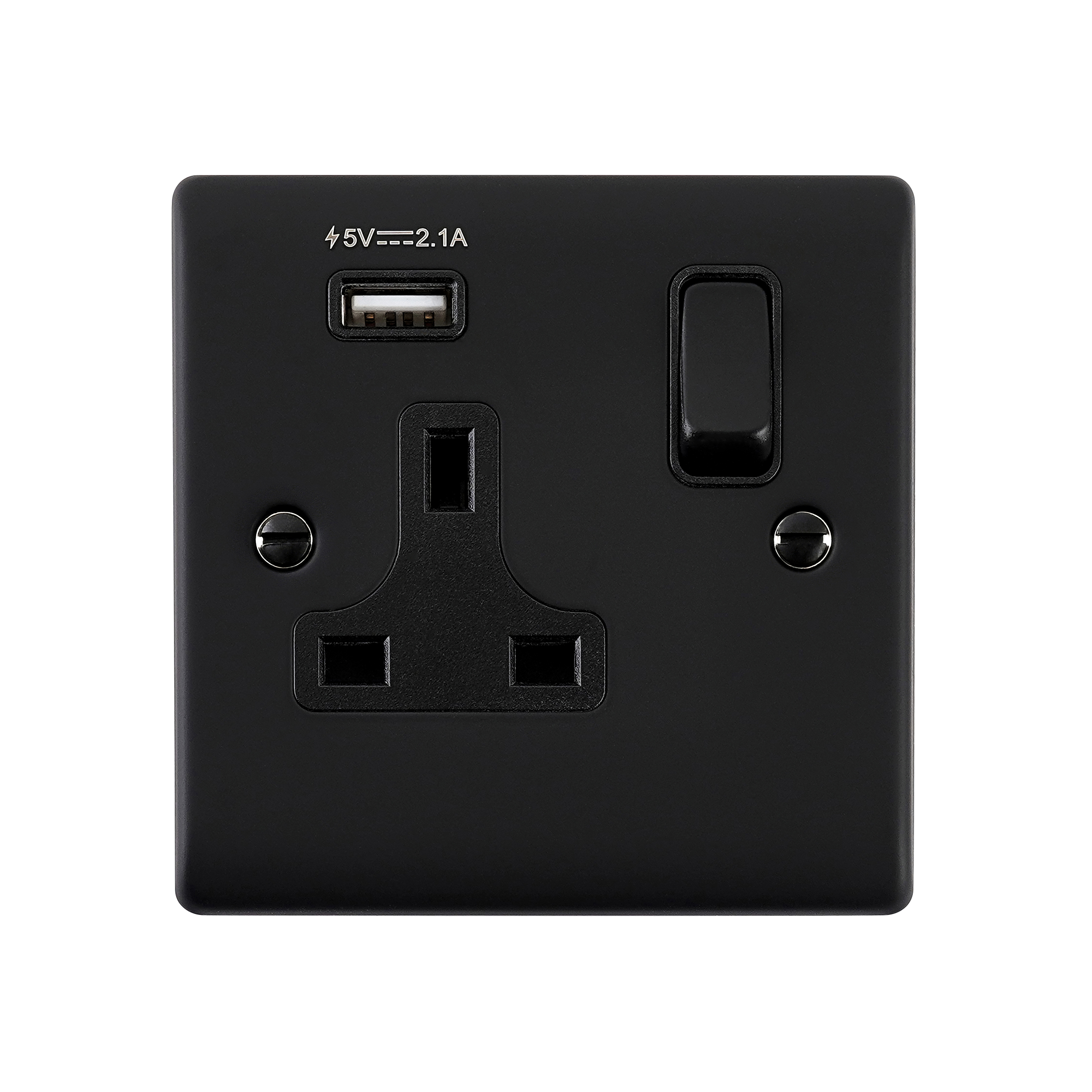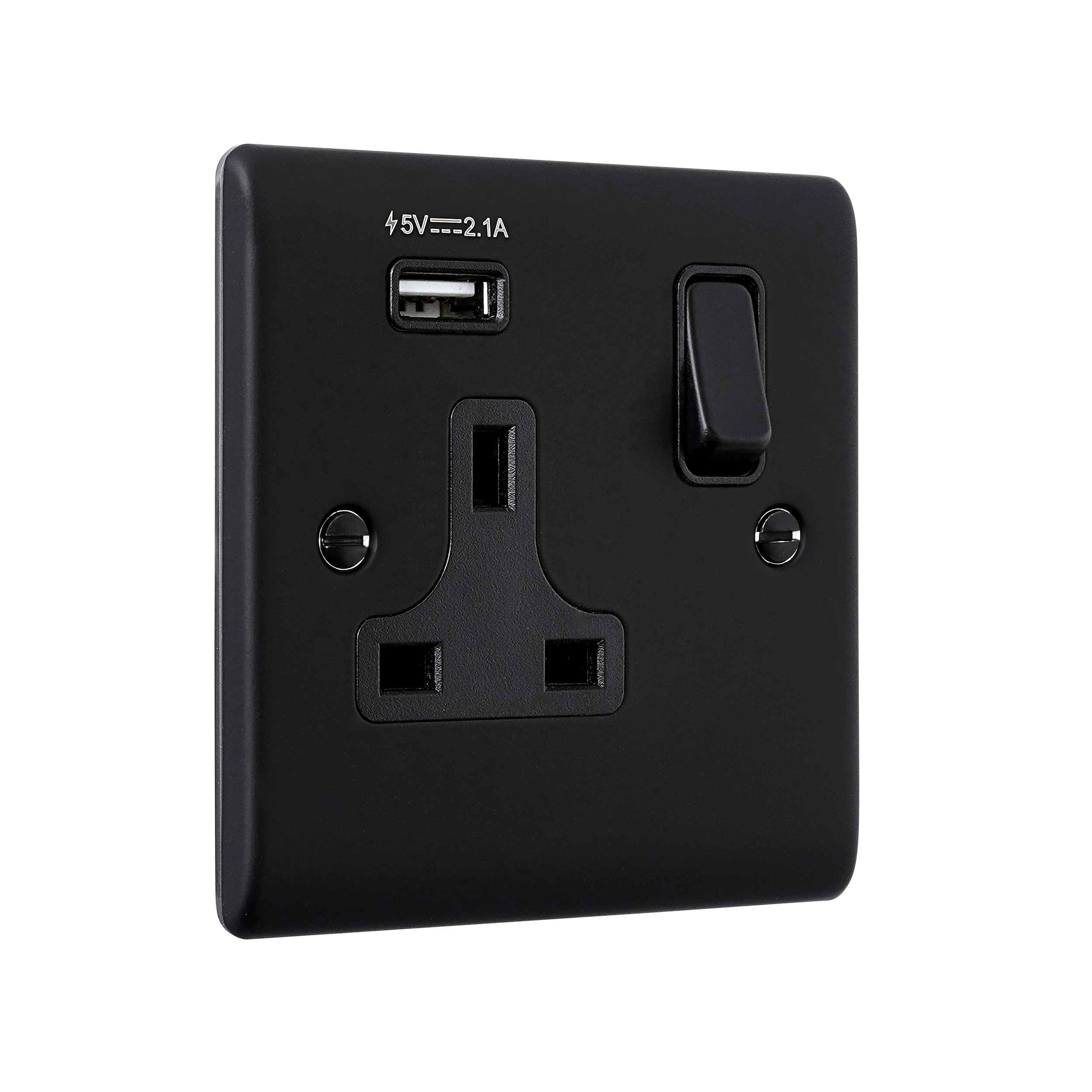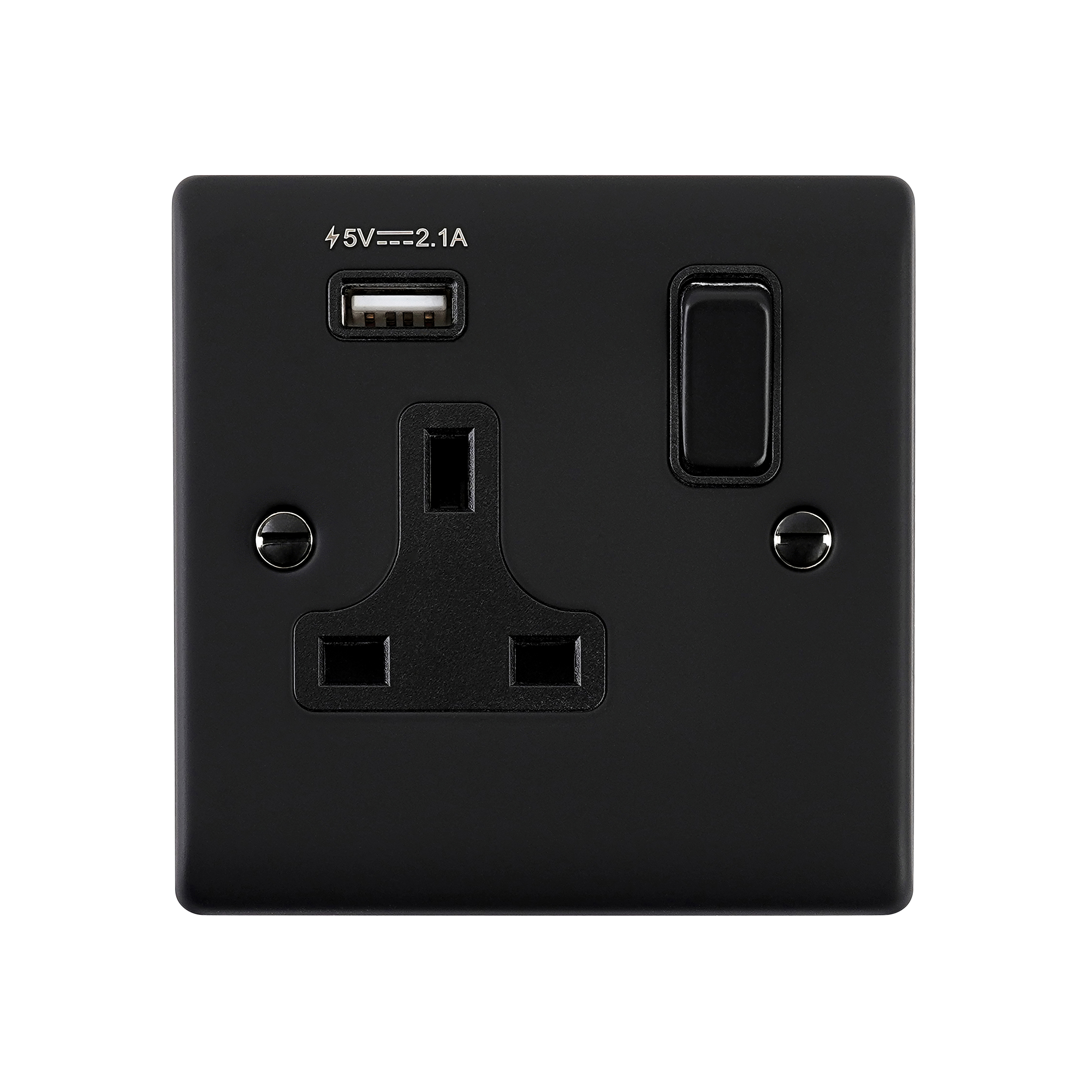 Saxby Electrical Raised Screwed 13A 1G DP Socket 2.1V USB Matt Black
