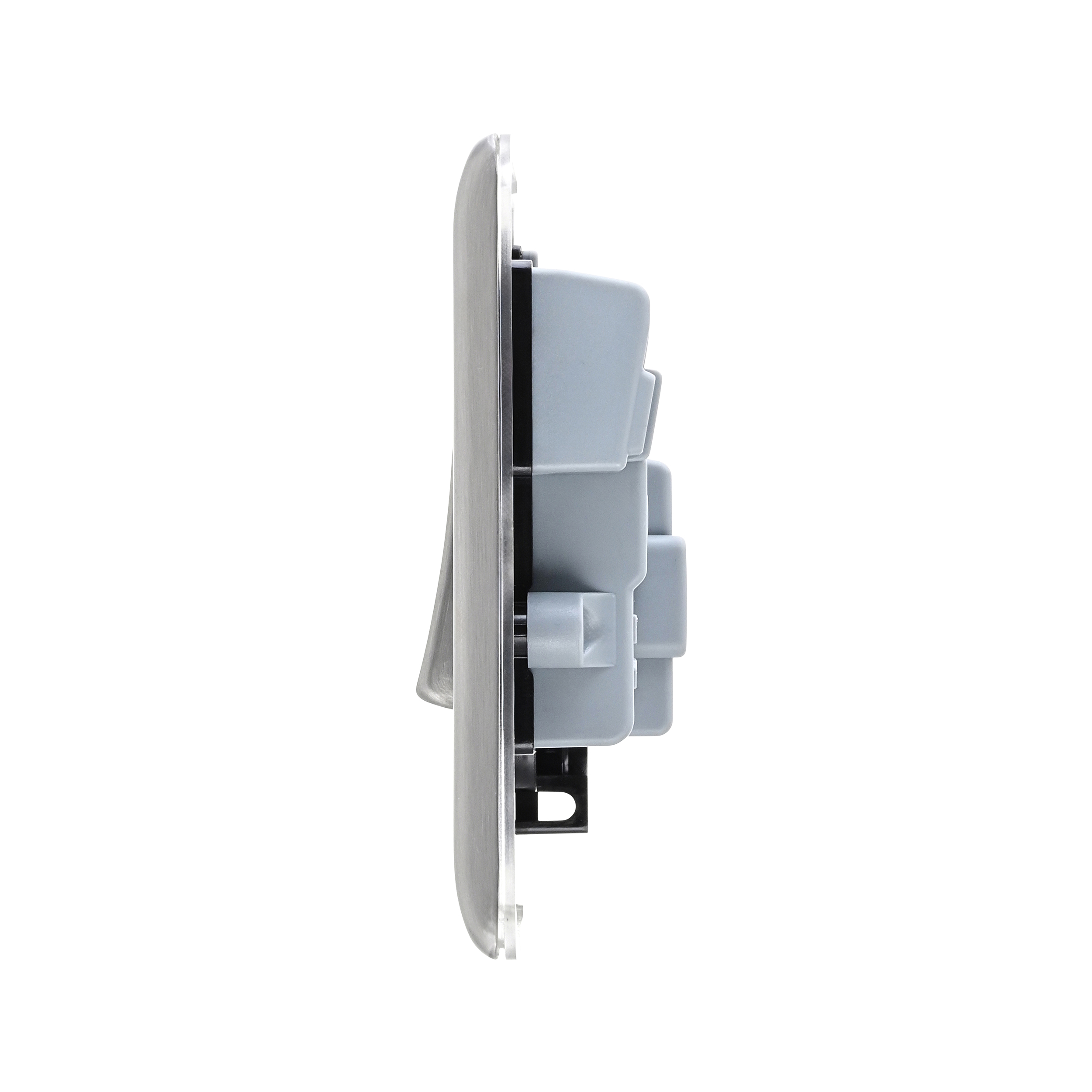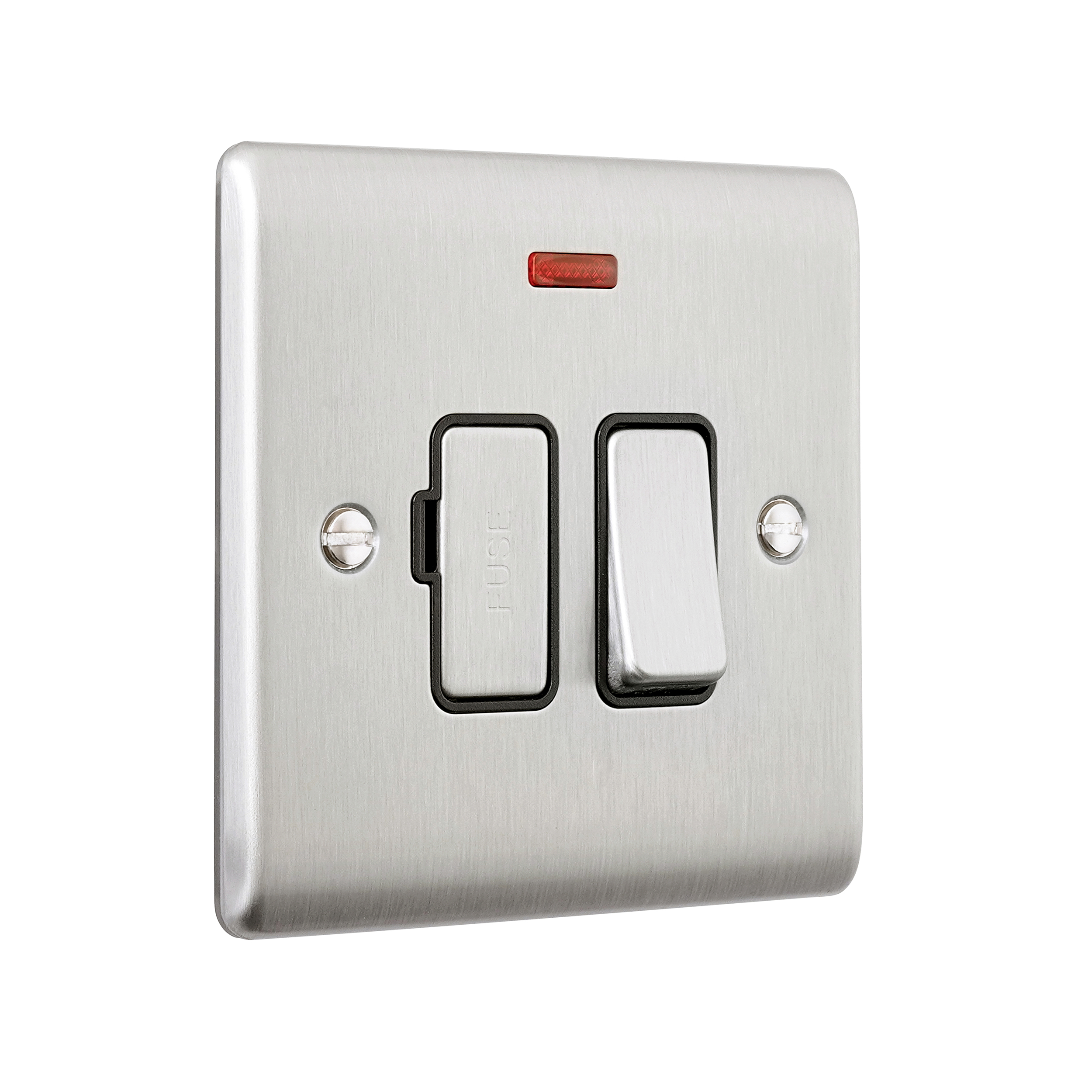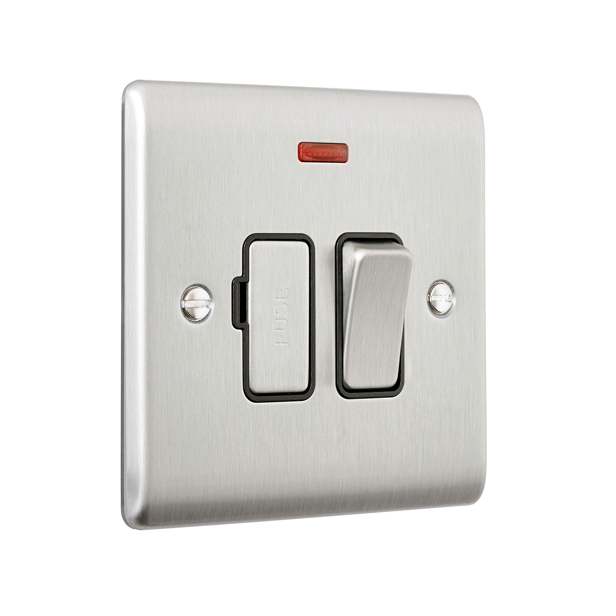Our 13A rated fuse spur socket boasts angled in-line terminals with captive screws which provide for quick and easy access and a hassle free installation. Supplied with fixing screws. Flush neon power indicator on faceplate. Moisture gasket as standard to help prevent any moisture transfer to decorative front plate. We recommend a minimum mounting box depth of 25mm.