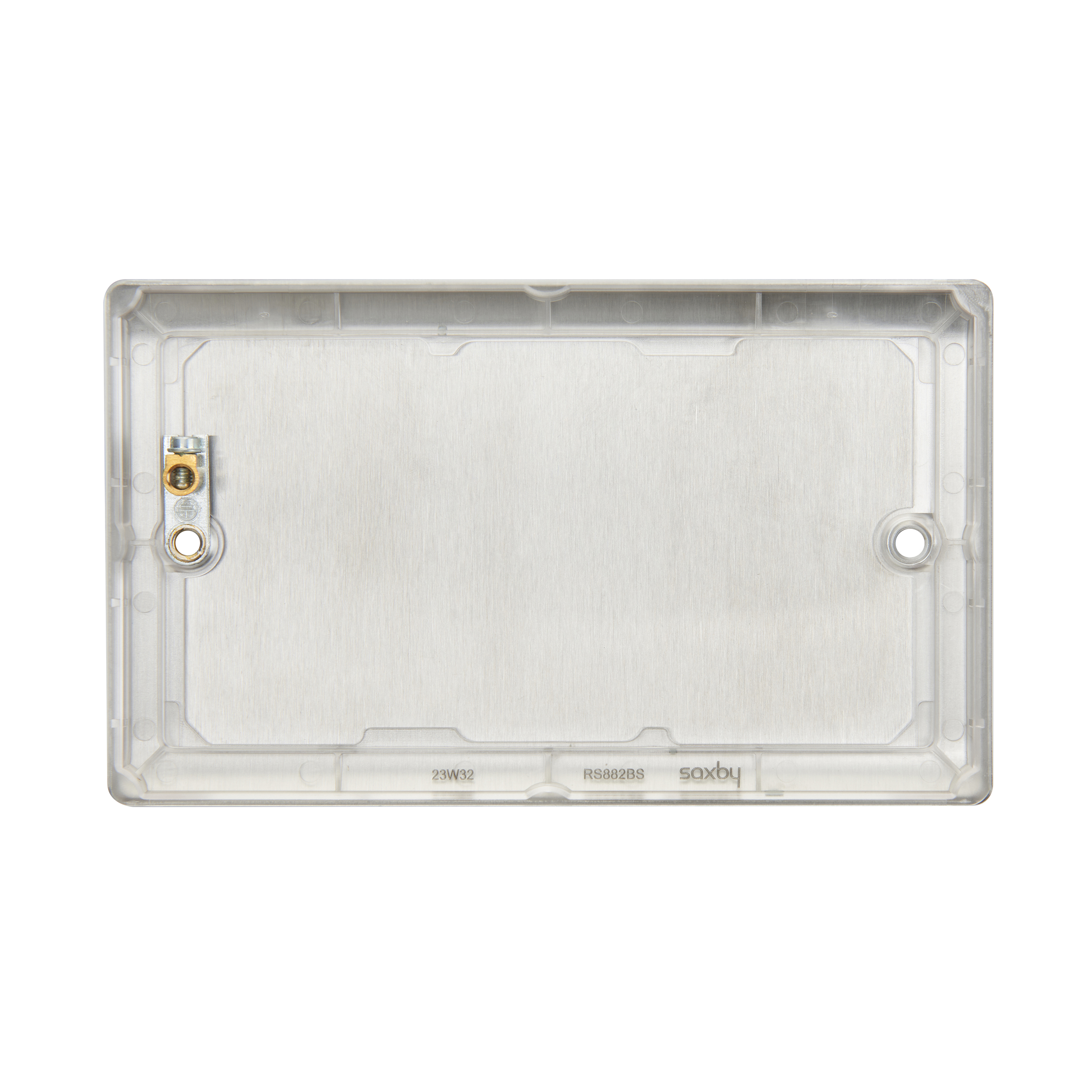 Suitable for covering unused electrical connections. Supplied with fixing screws. Moisture gasket as standard to help prevent any moisture transfer to decorative front plate. Certified to BS 5733