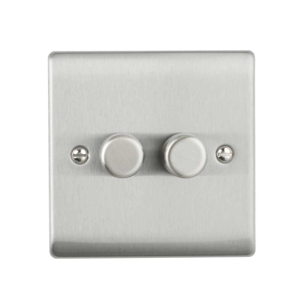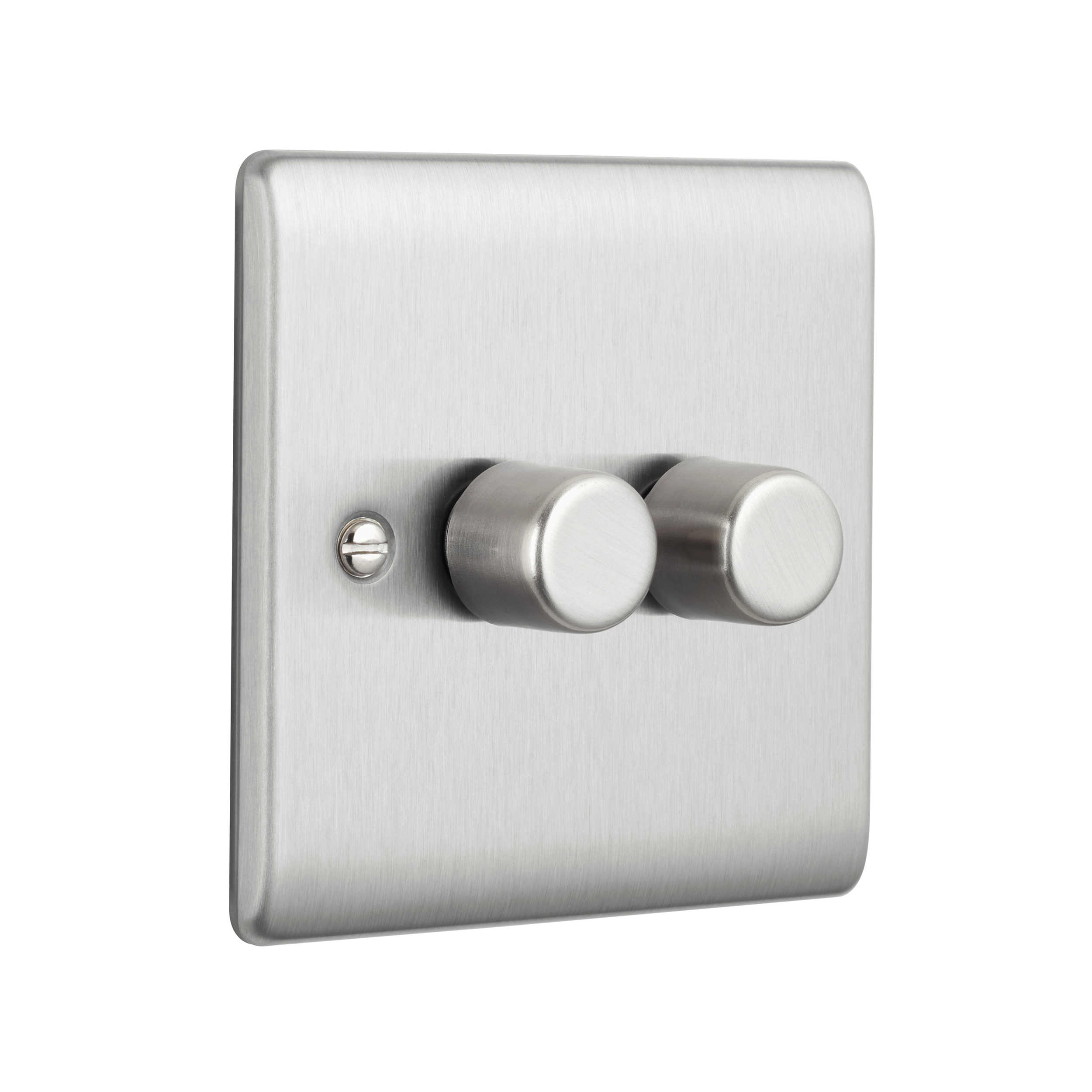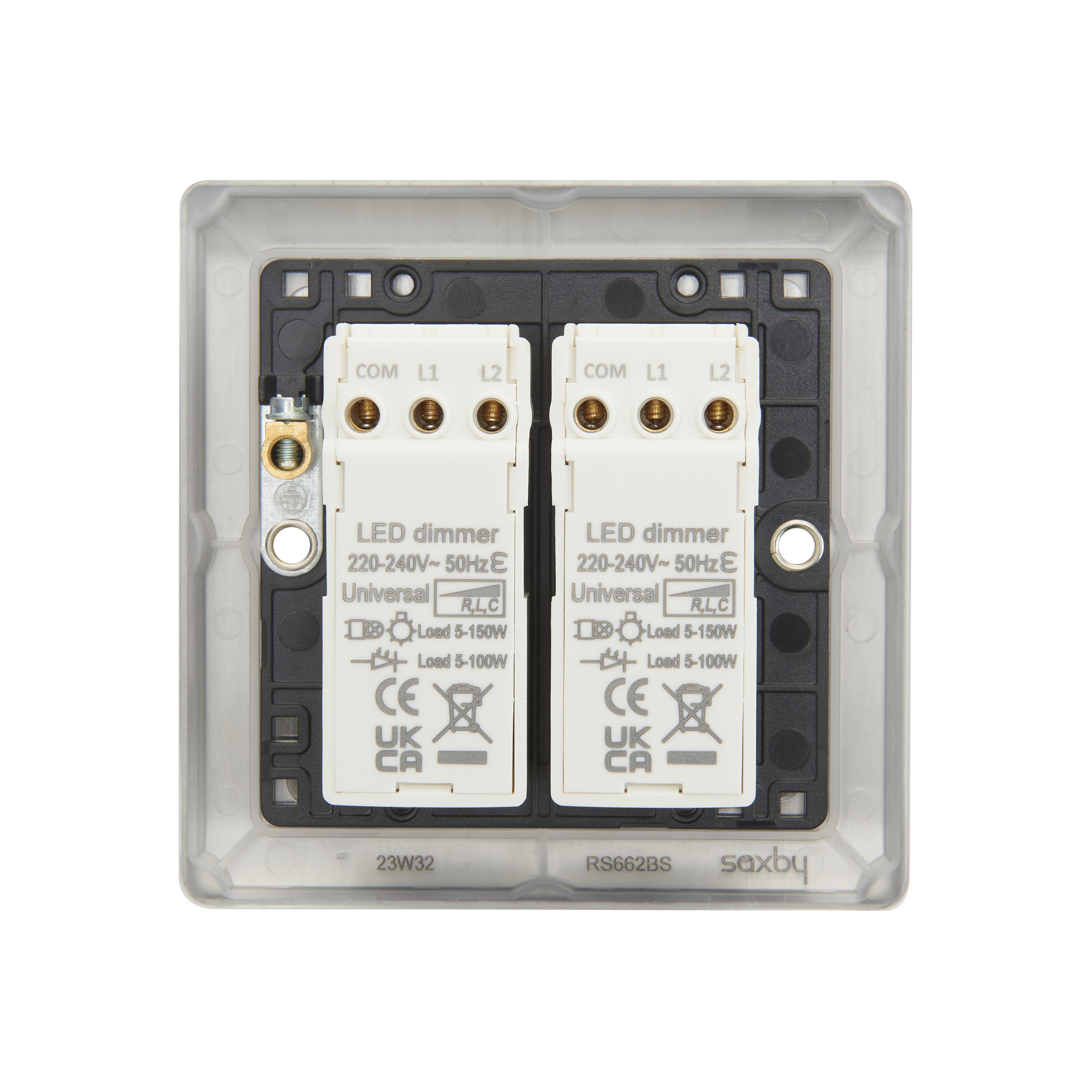 Saxby Electrical Raised Screwed 2G LED Dimmer 5-100W Brushed Steel