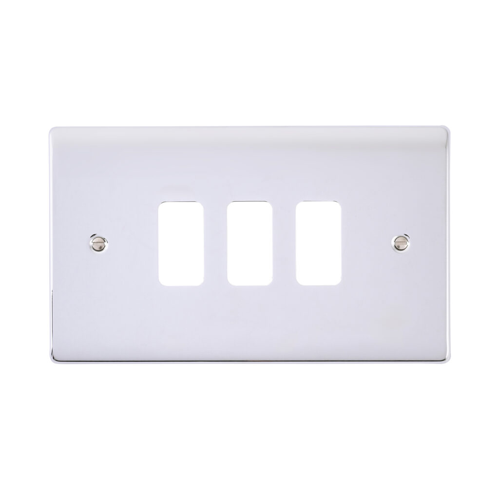 Saxby Electrical Raised Screwed 3G Grid Front Plate Polished Chrome