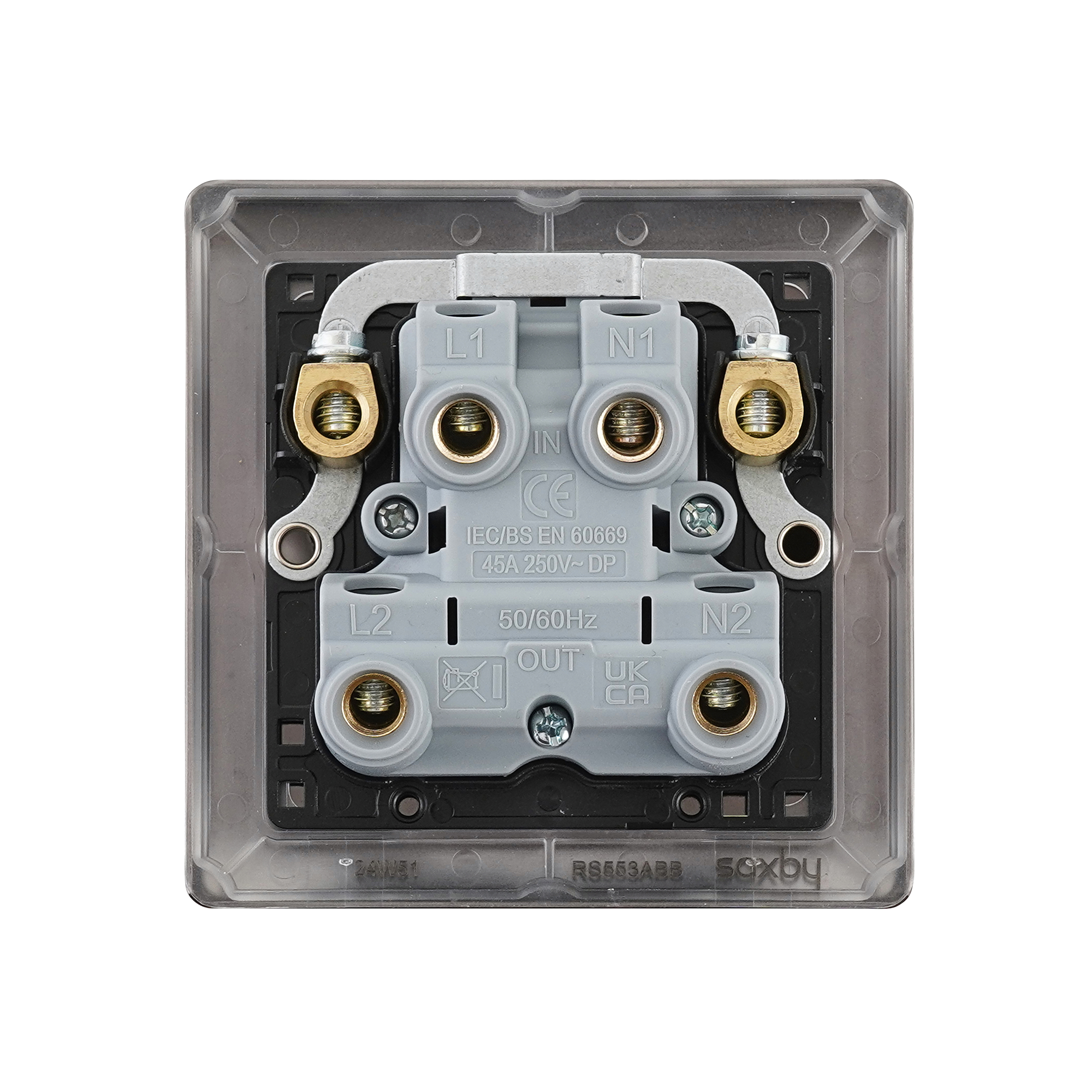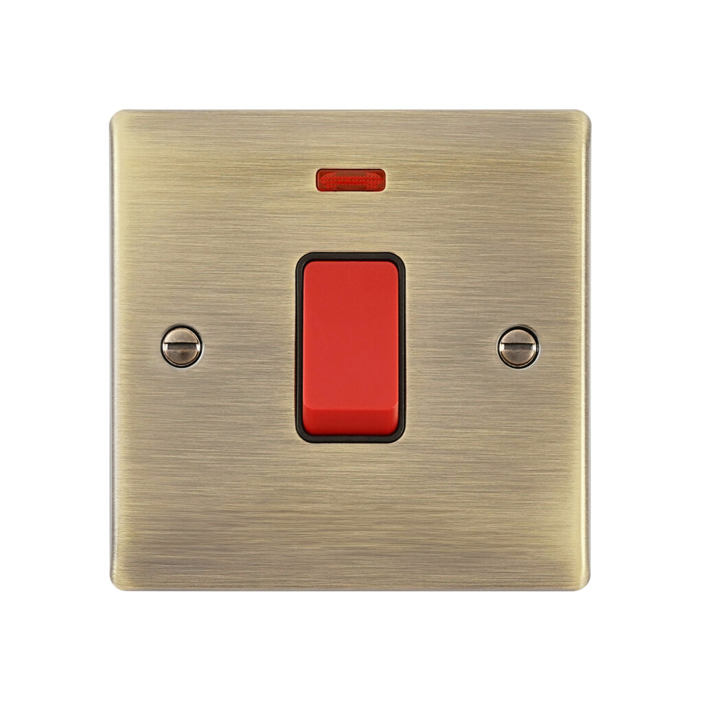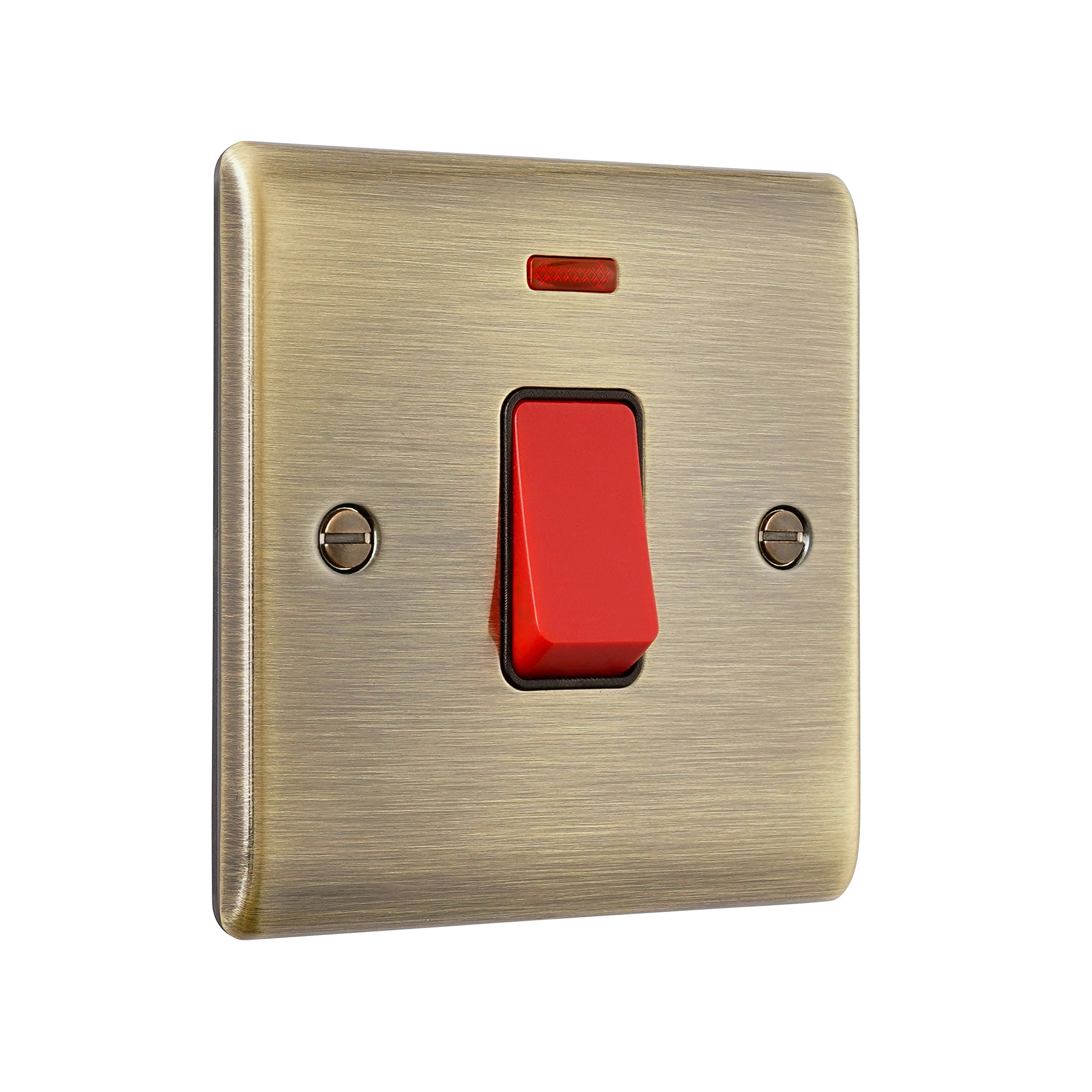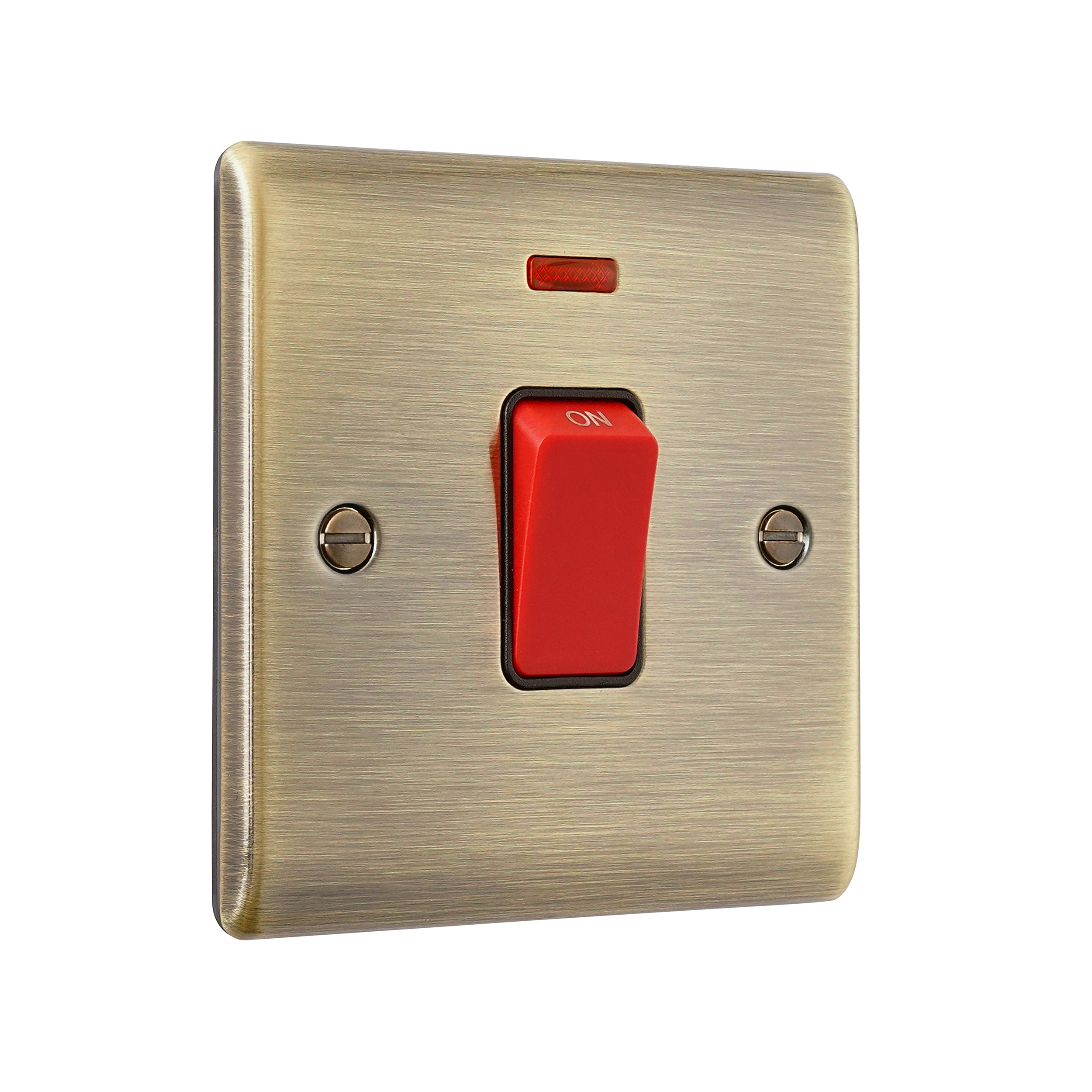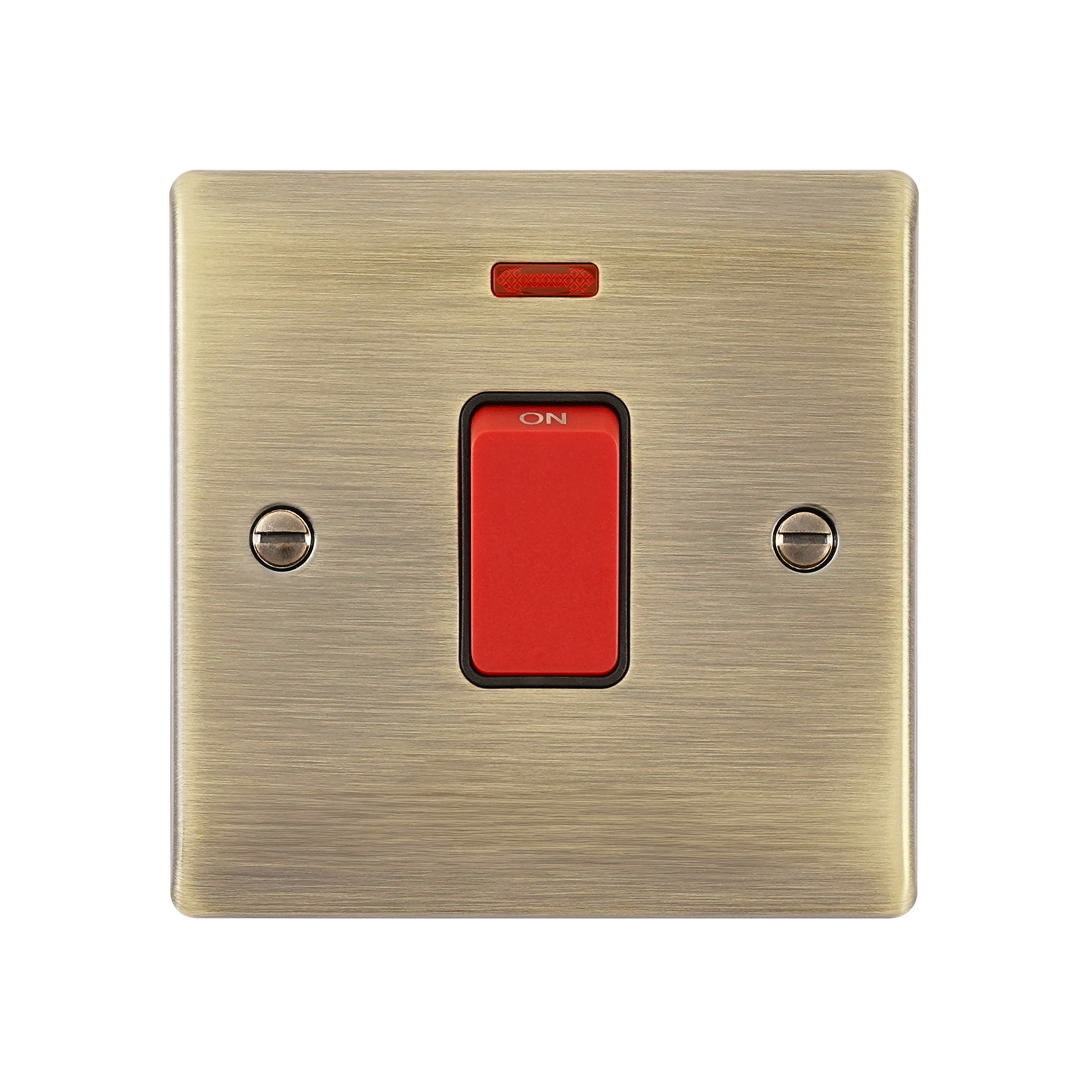 Saxby Electrical Raised Screwed 45A 1G DP Switch Neon Antique Brass