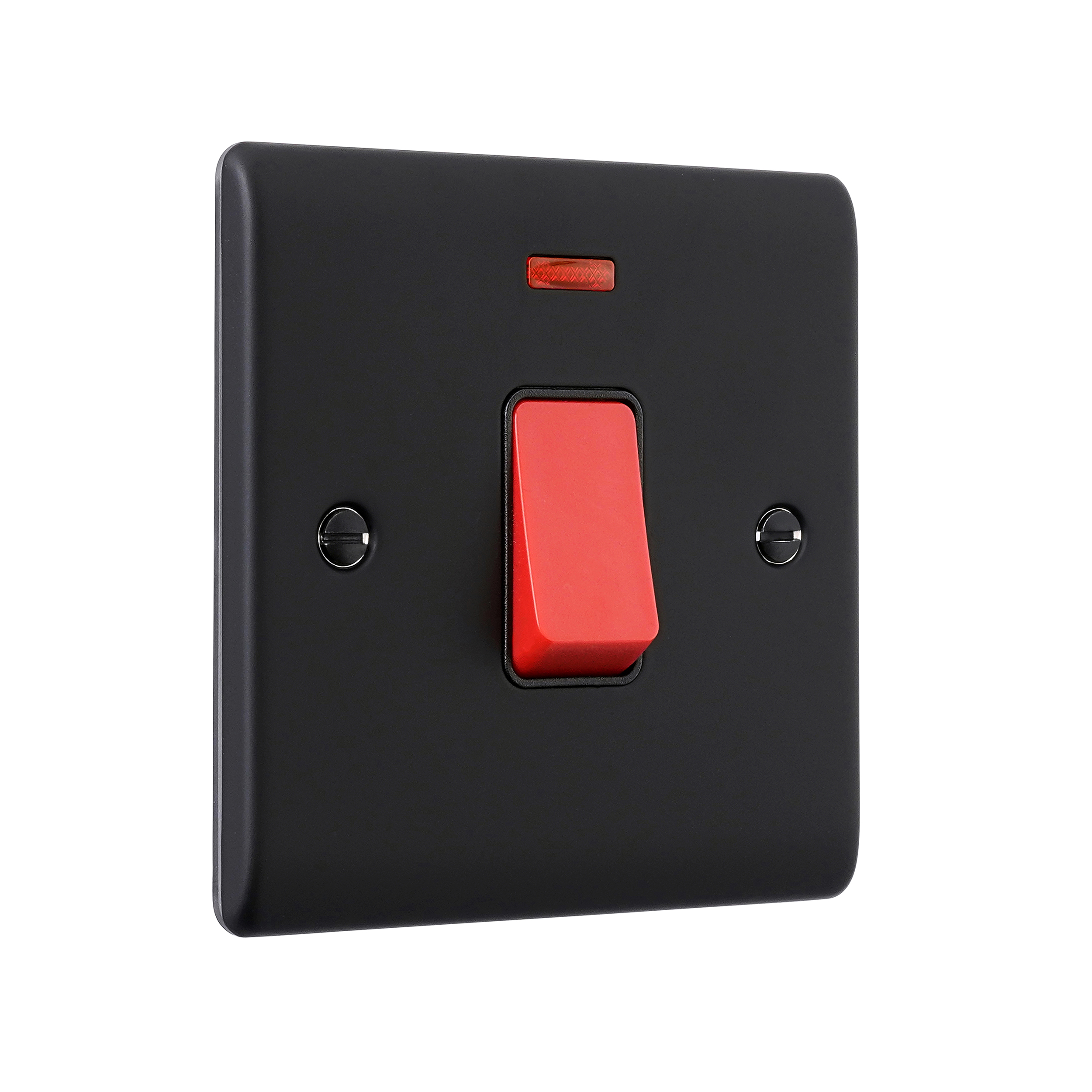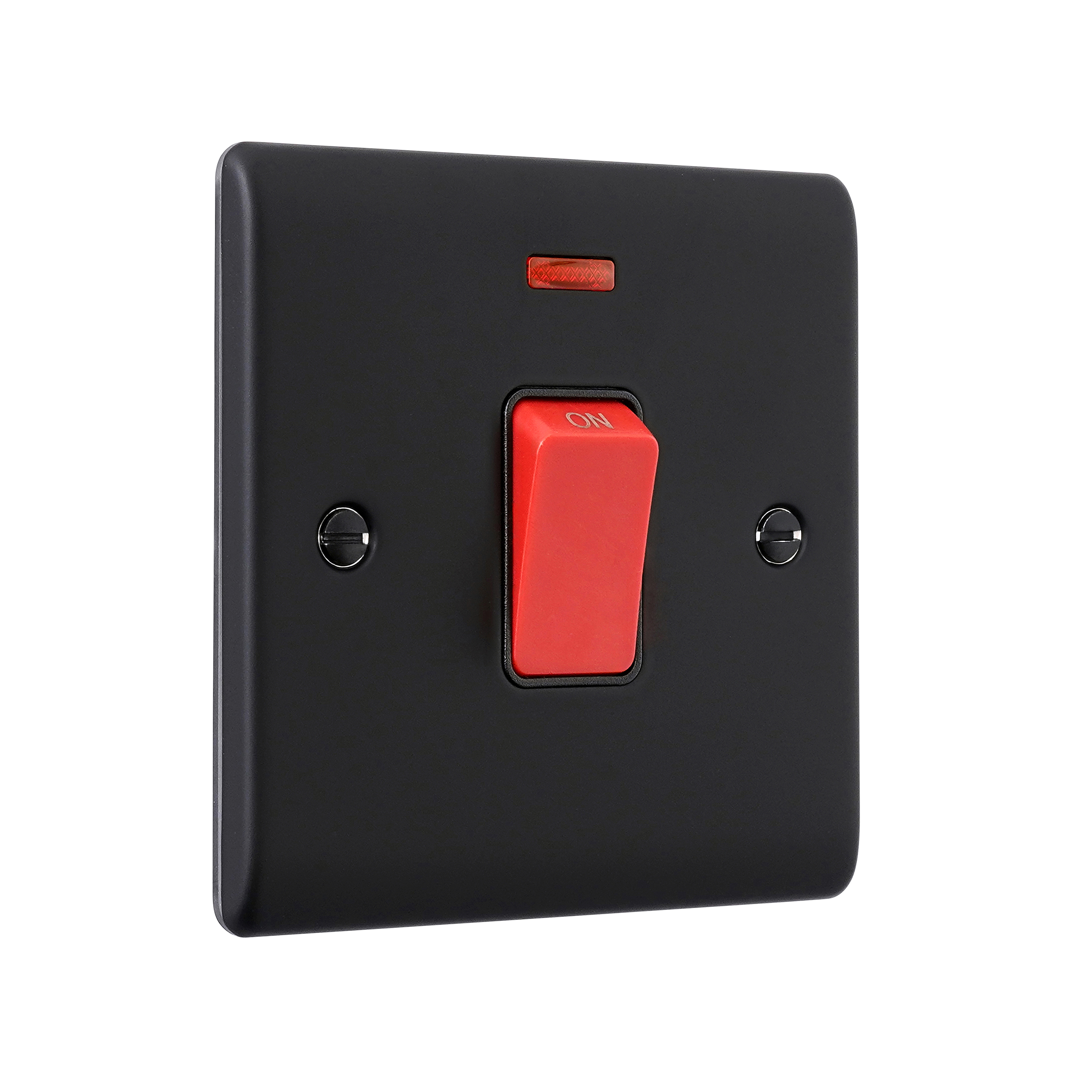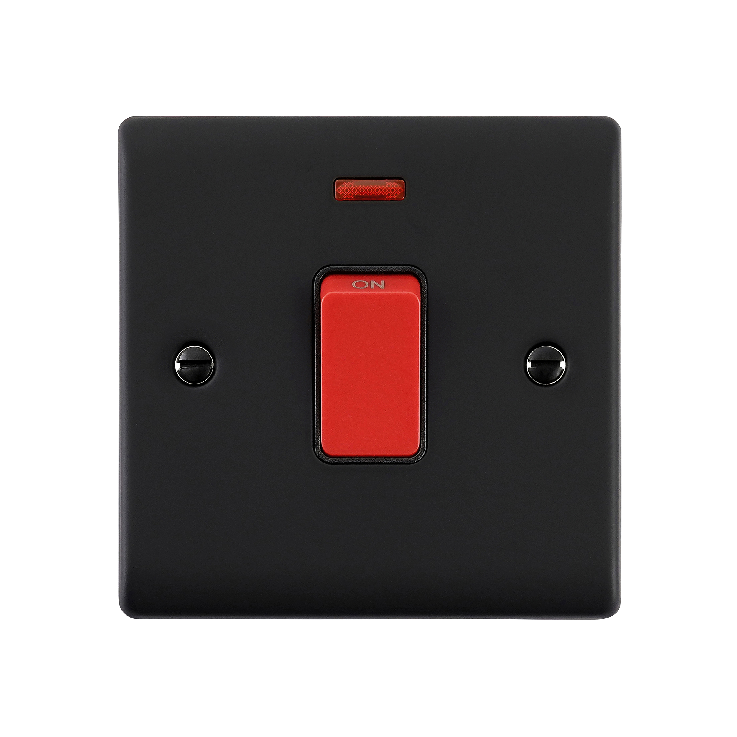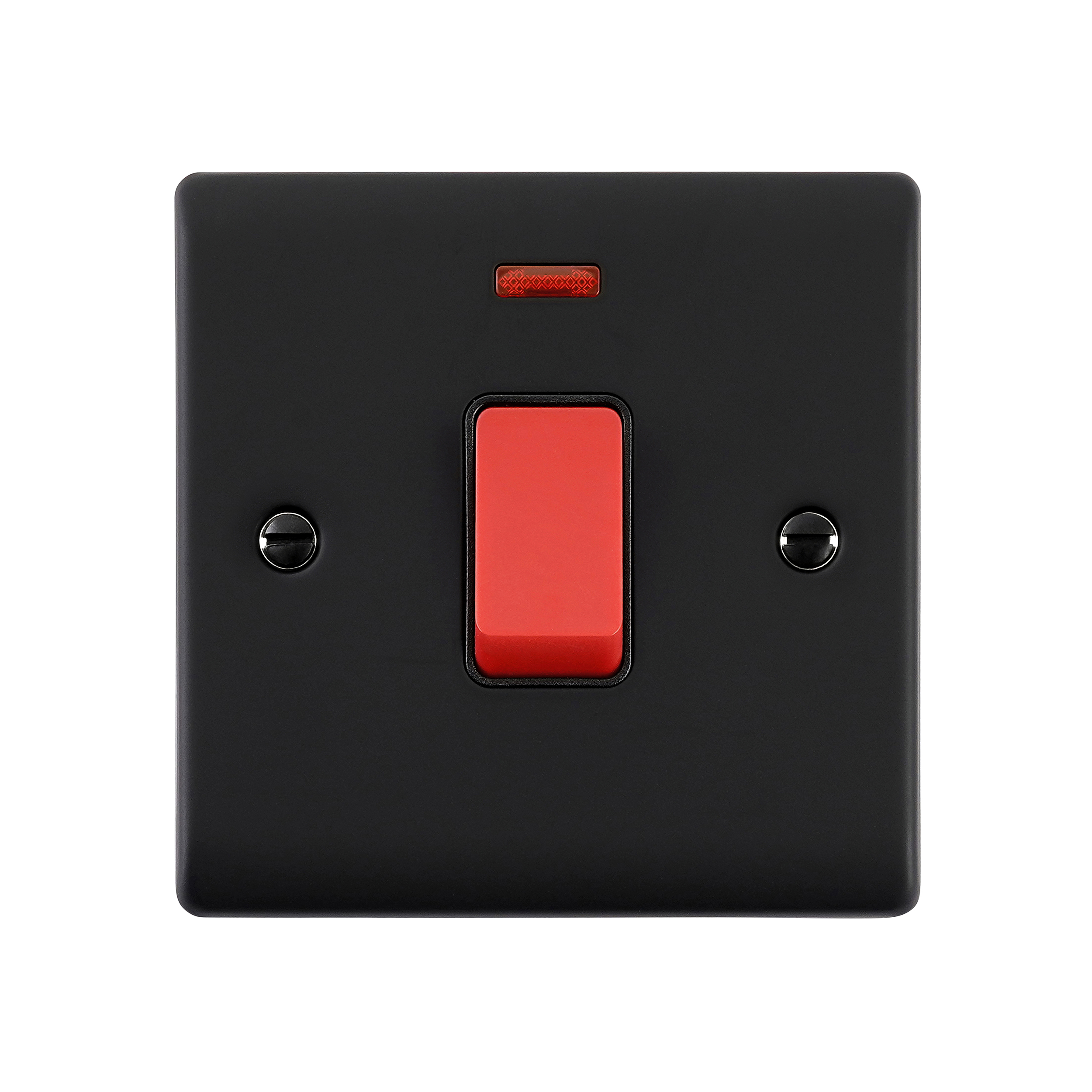 Saxby Electrical Raised Screwed 45A 1G DP Switch Neon Matt Black