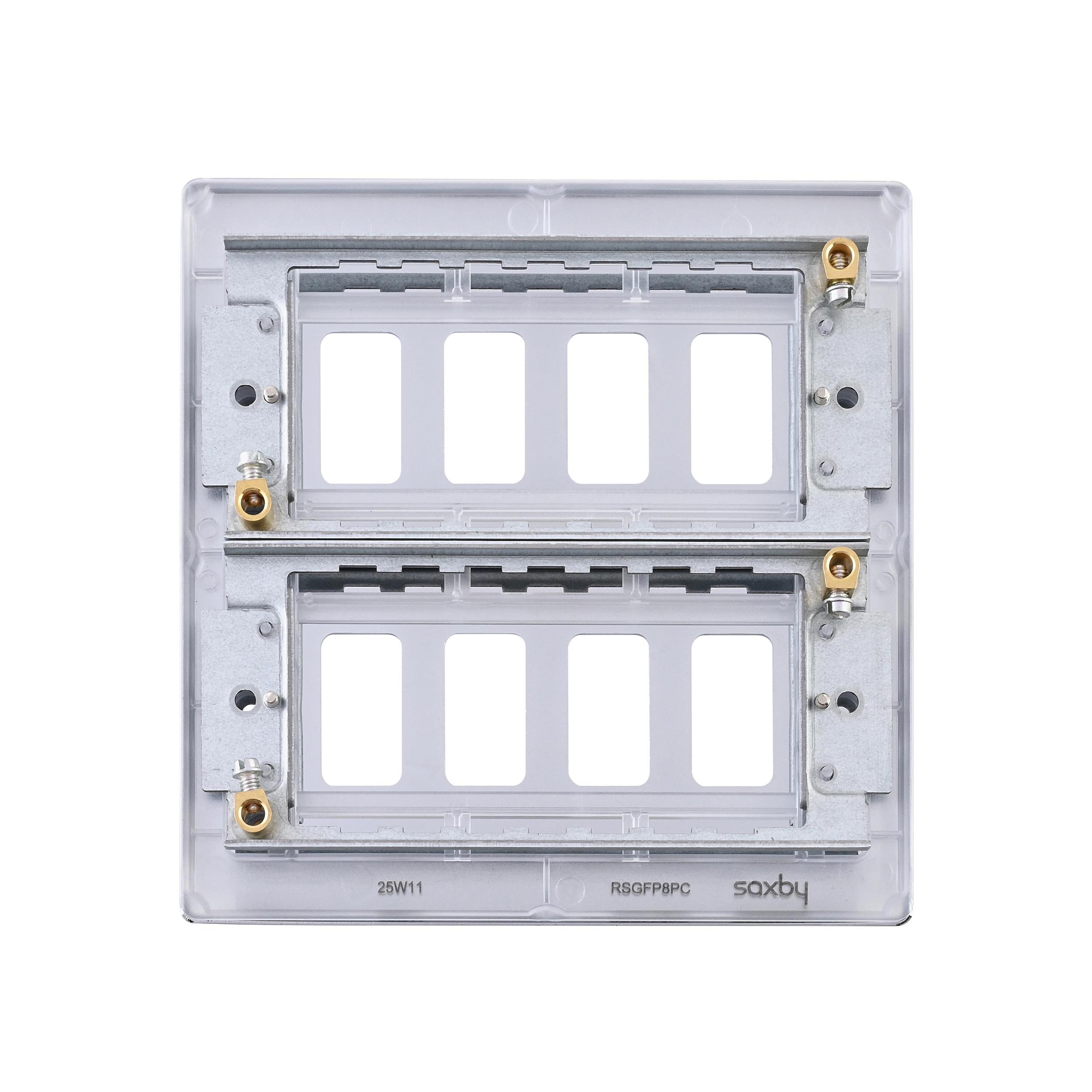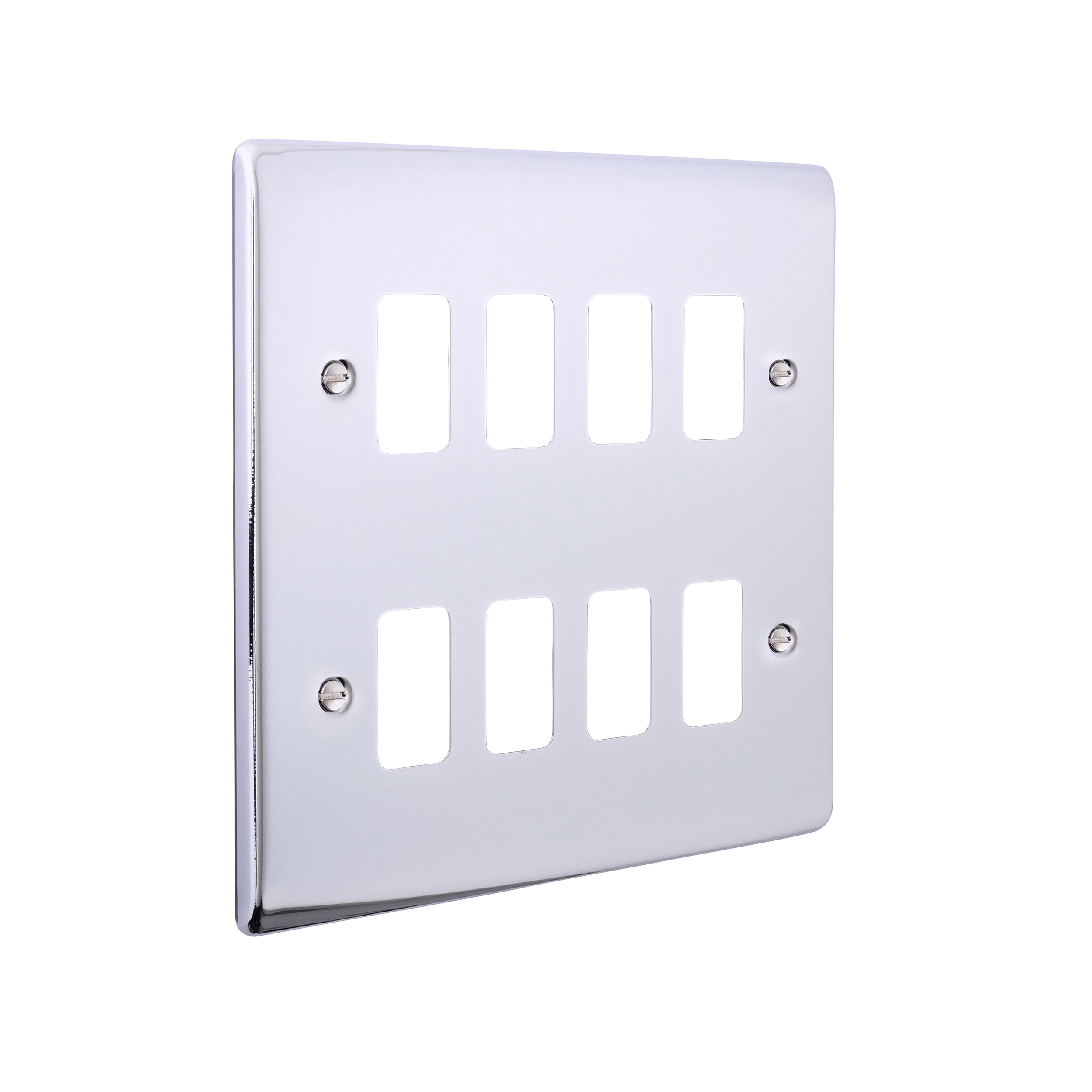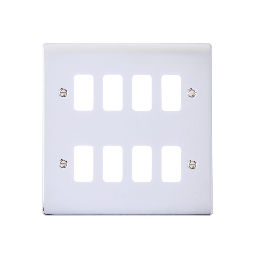 Saxby Electrical Raised Screwed 8G Grid Front Plate Polished Chrome