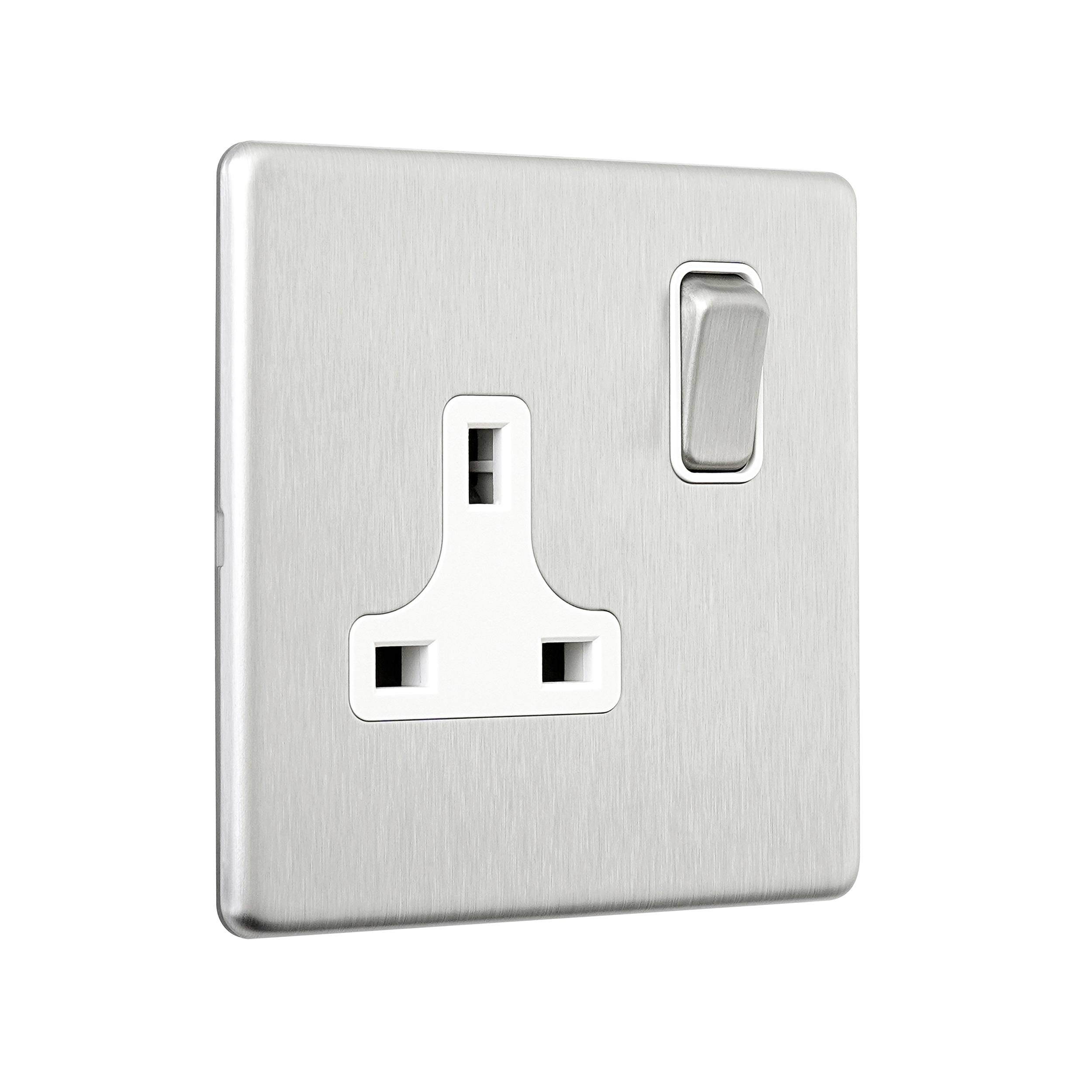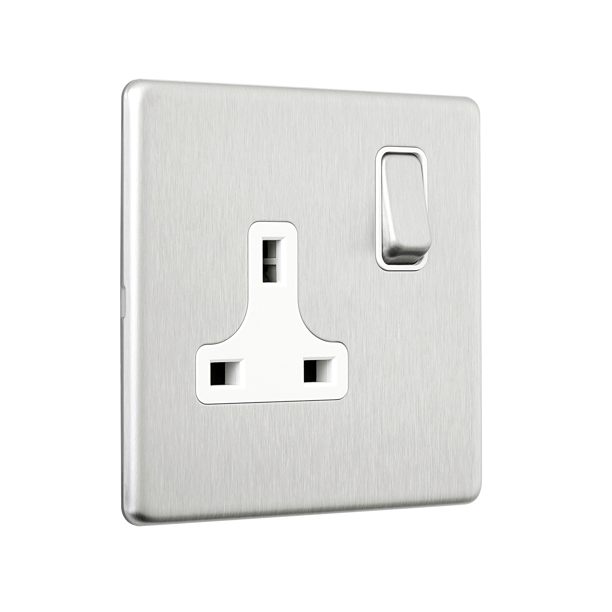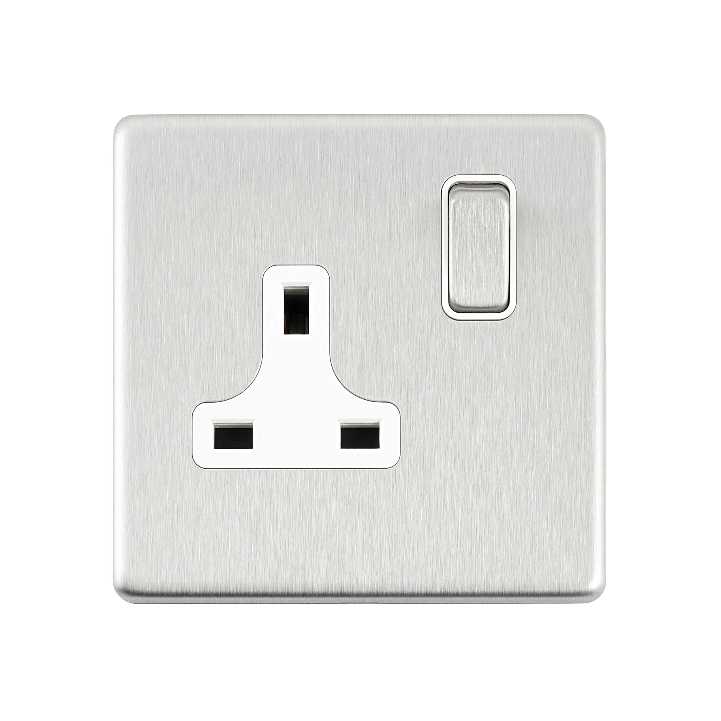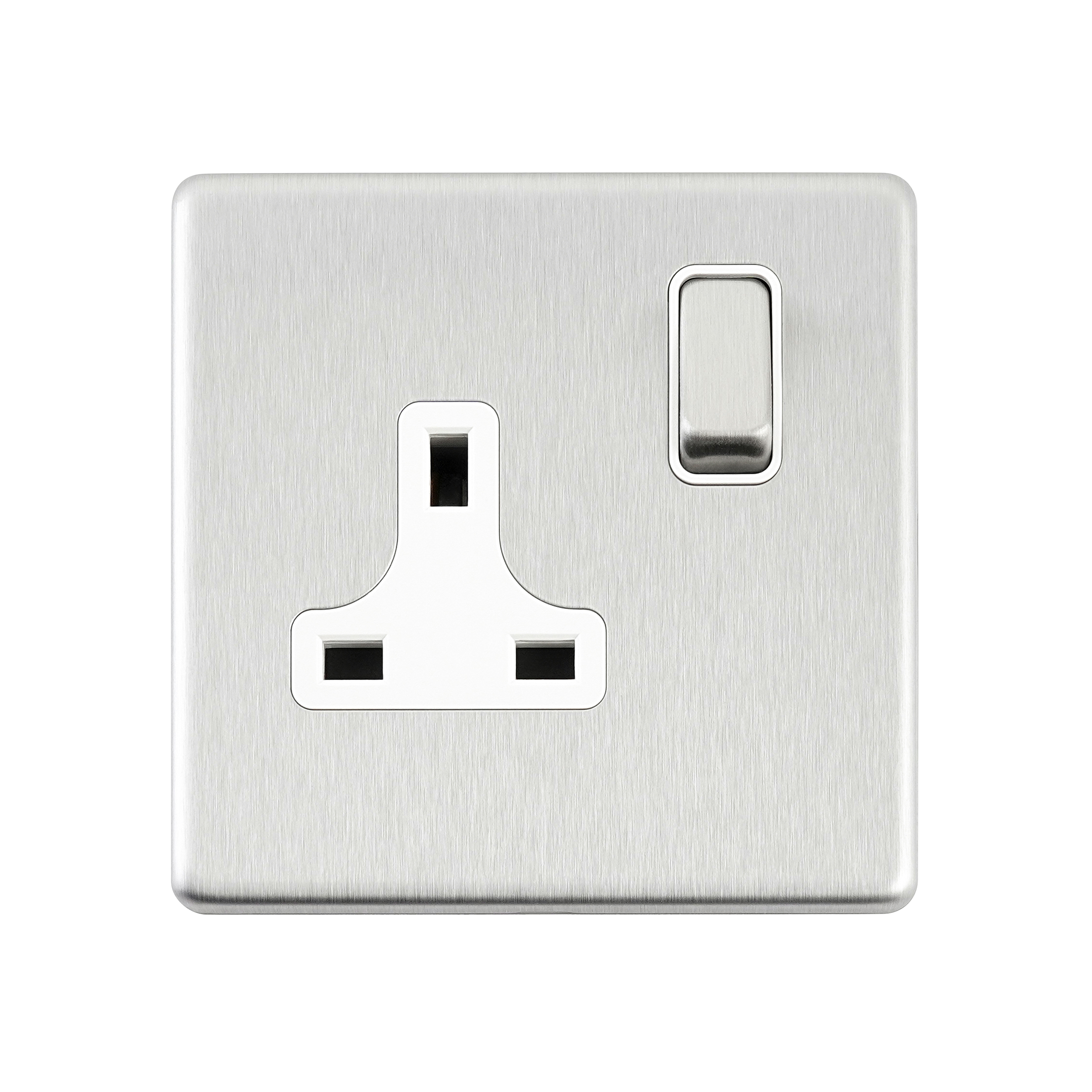 Saxby Electrcial Screwless 13A 1G DP Socket Brushed Steel
