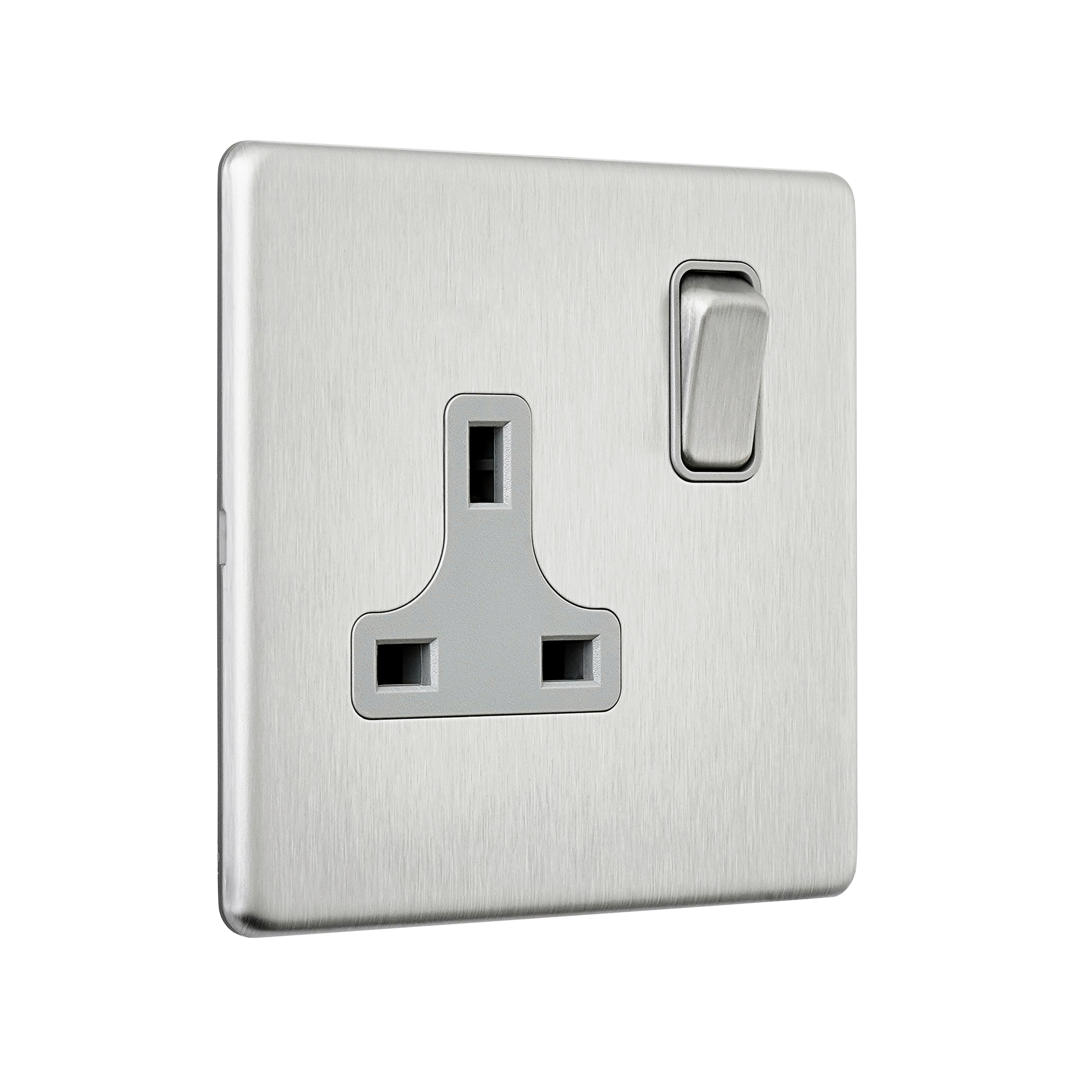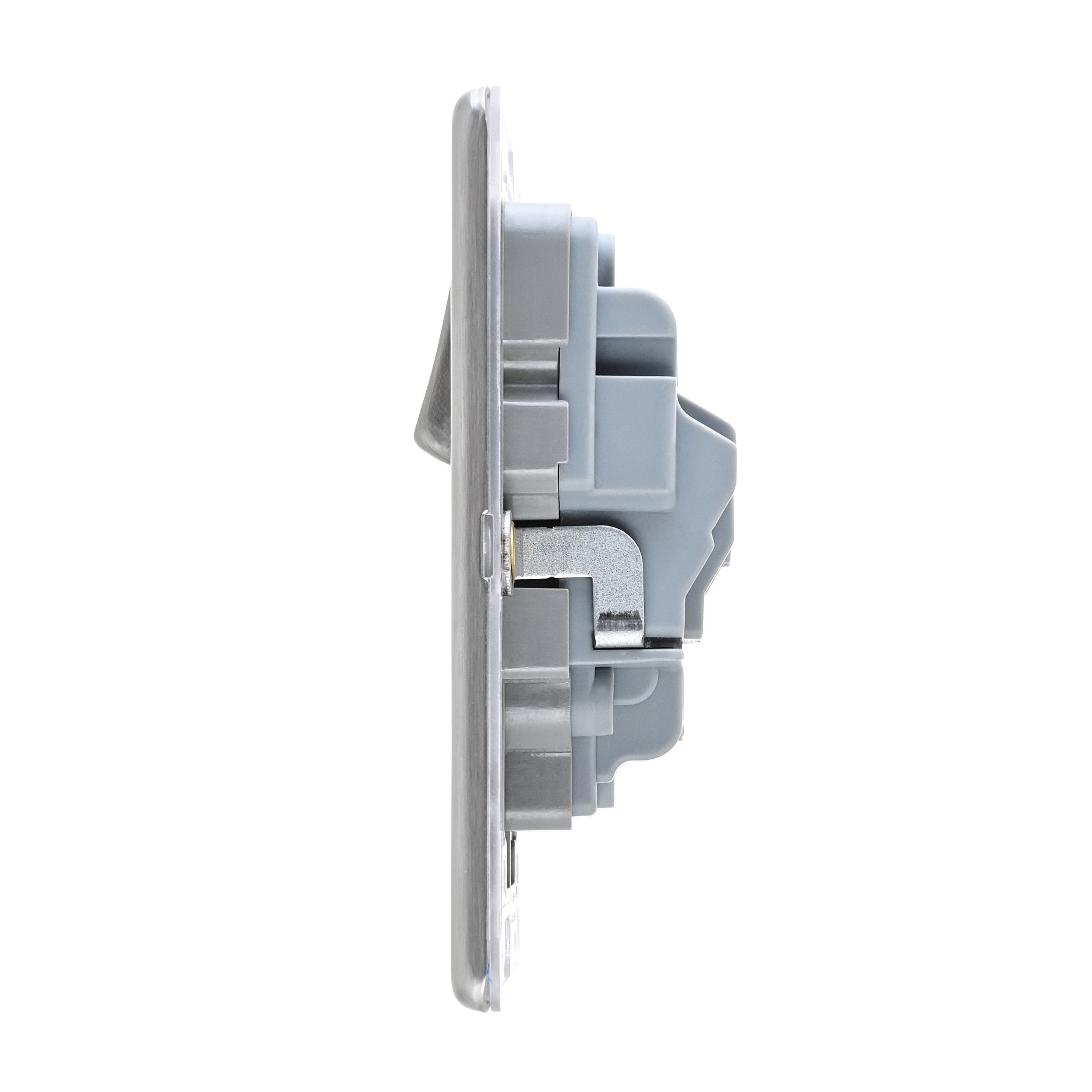 Our 13A rated socket boasts angled in-line terminals with captive screws which provide for quick and easy access and a hassle free installation. Supplied with fixing screws. Twin earth fitted as standard to allow a double earth facility for installations that require a high integrity protective connection . Double pole switching for the peace of mind of a safer installation of your socket. Moisture gasket as standard to help prevent any moisture transfer to decorative front plate.