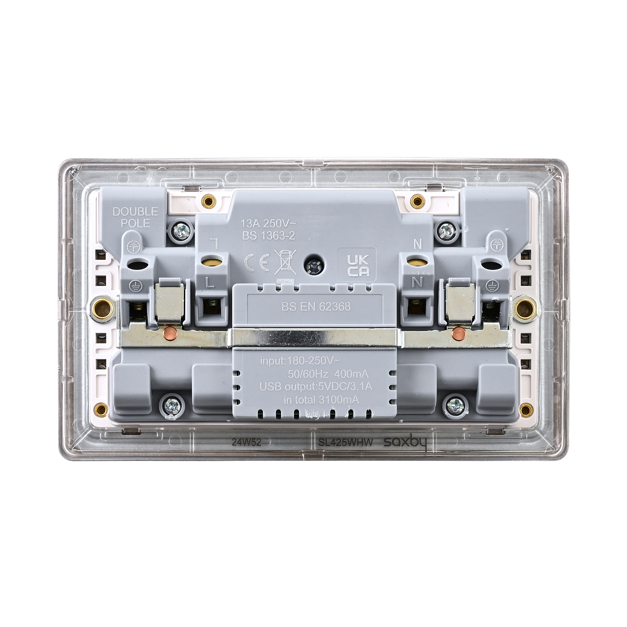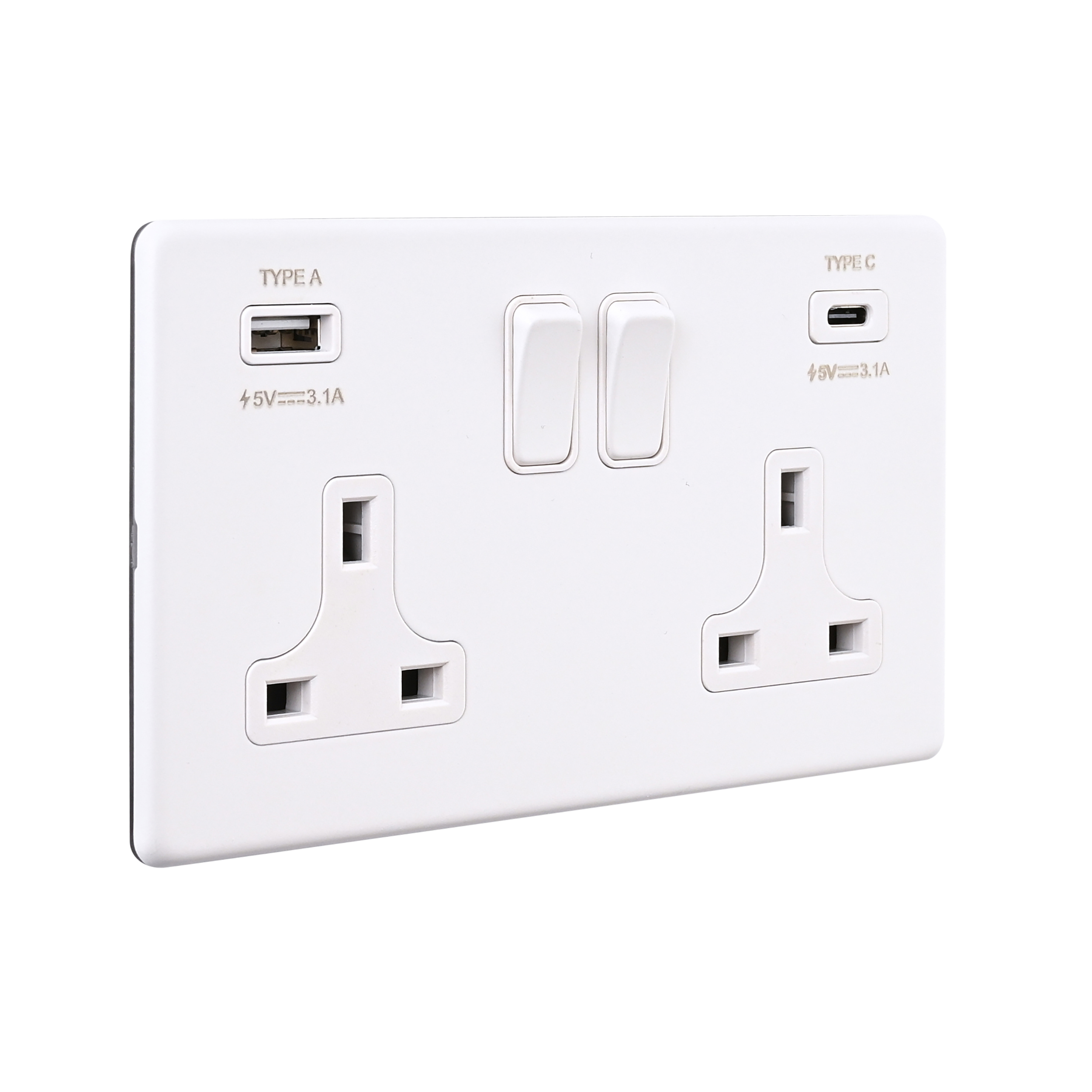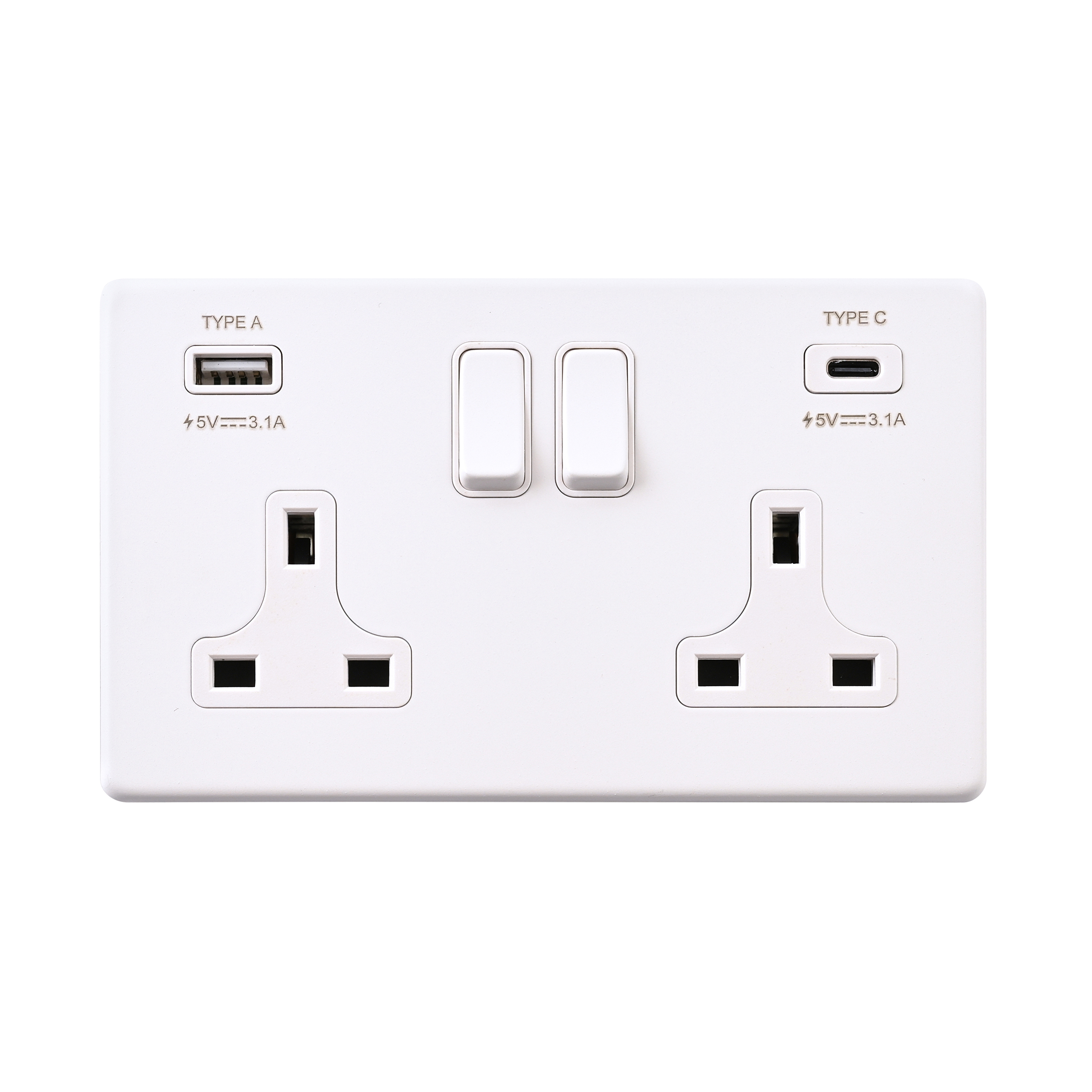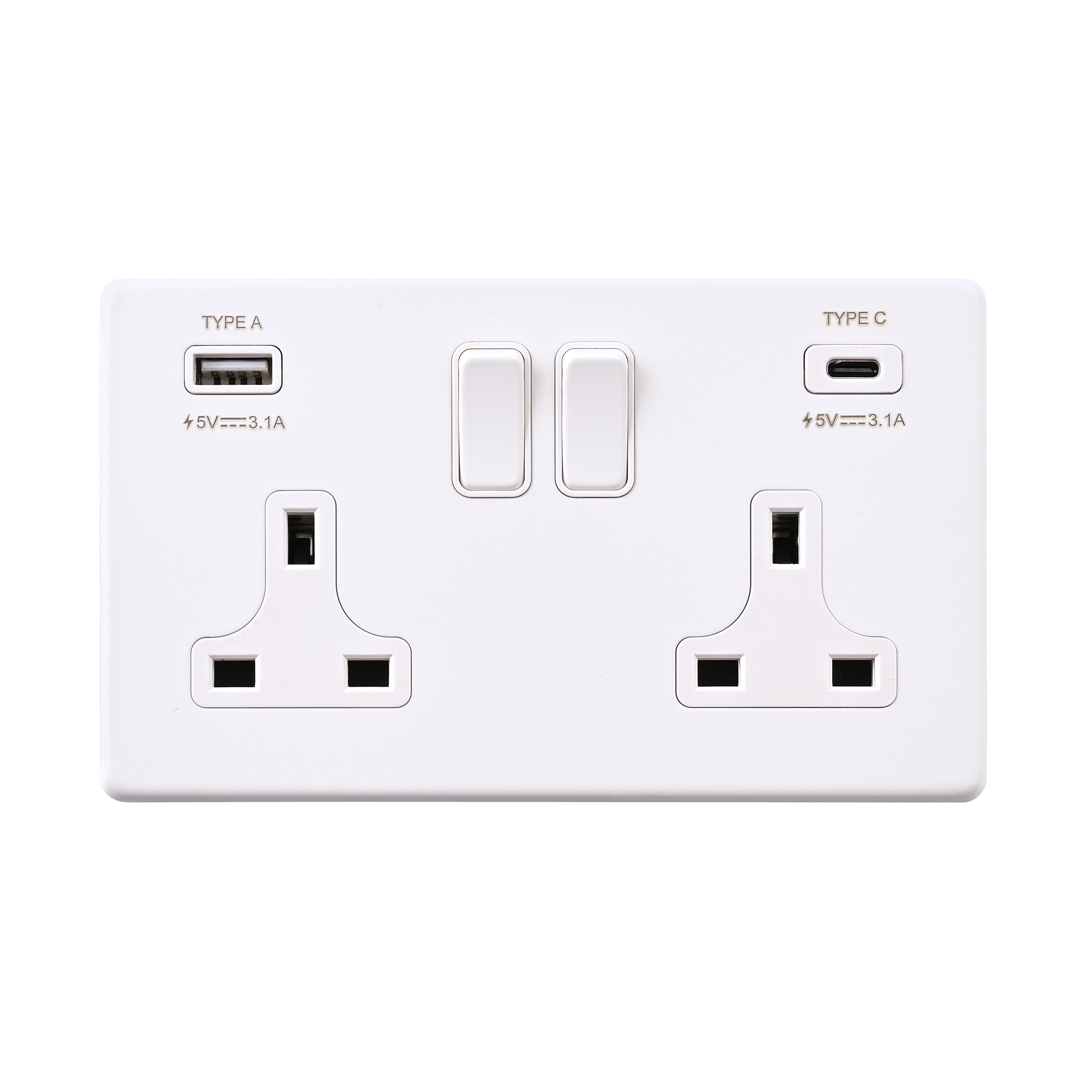 Saxby Electrcial Screwless 13A 2G DP Socket 15.5W USB A+C Matt White