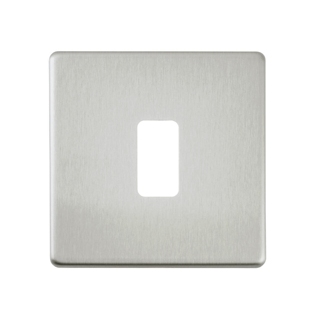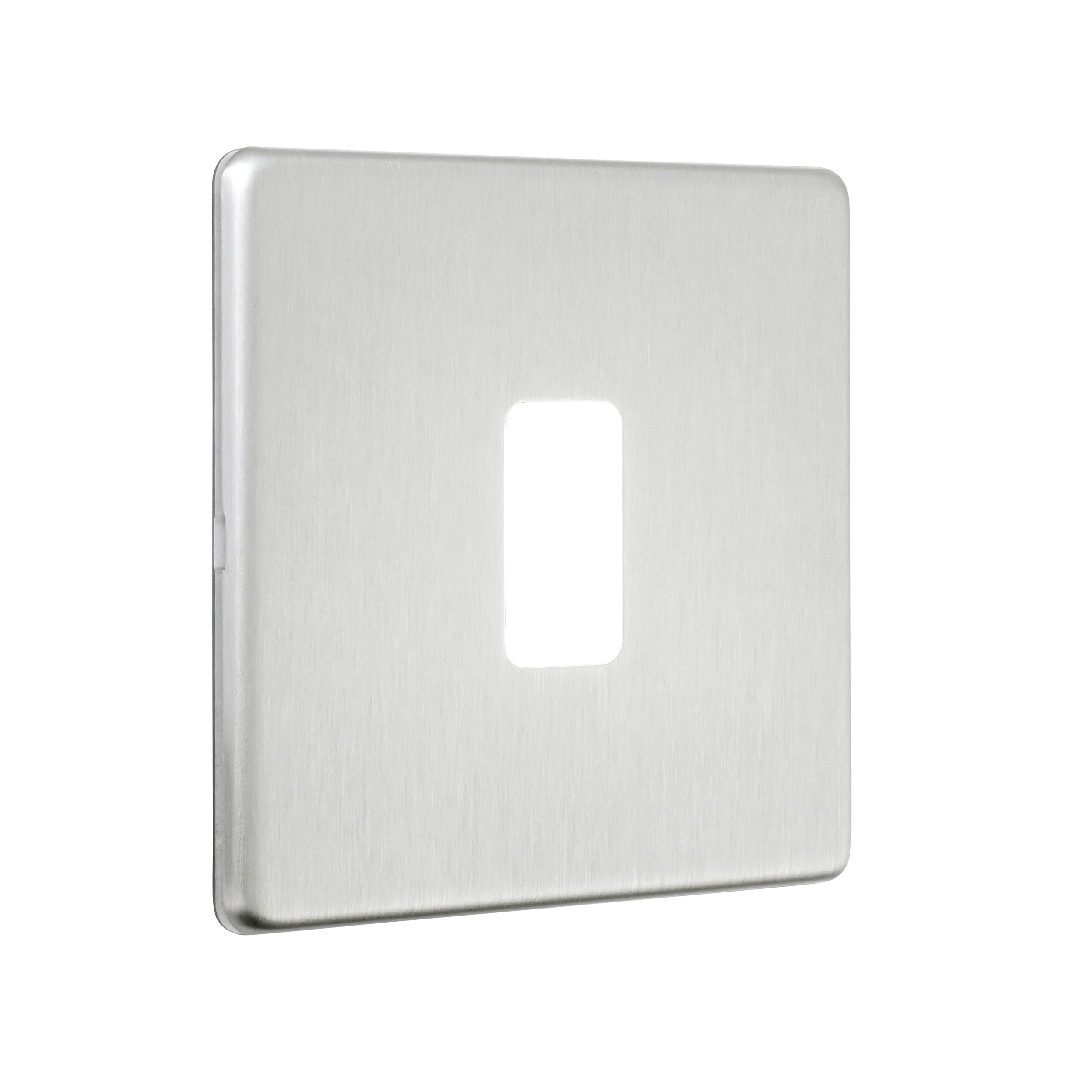 Saxby Electrical Screwless 1G Grid Front Plate Brushed Steel