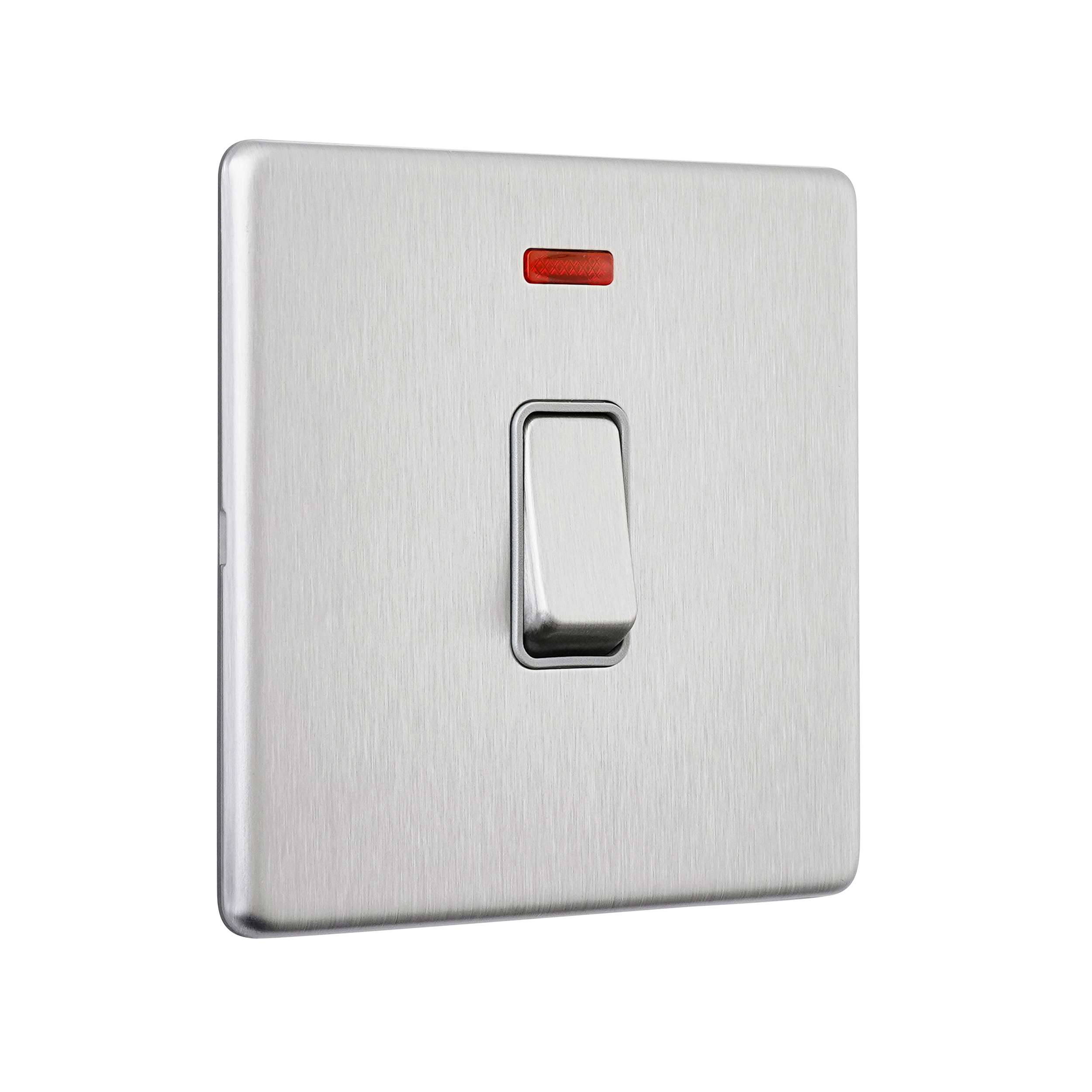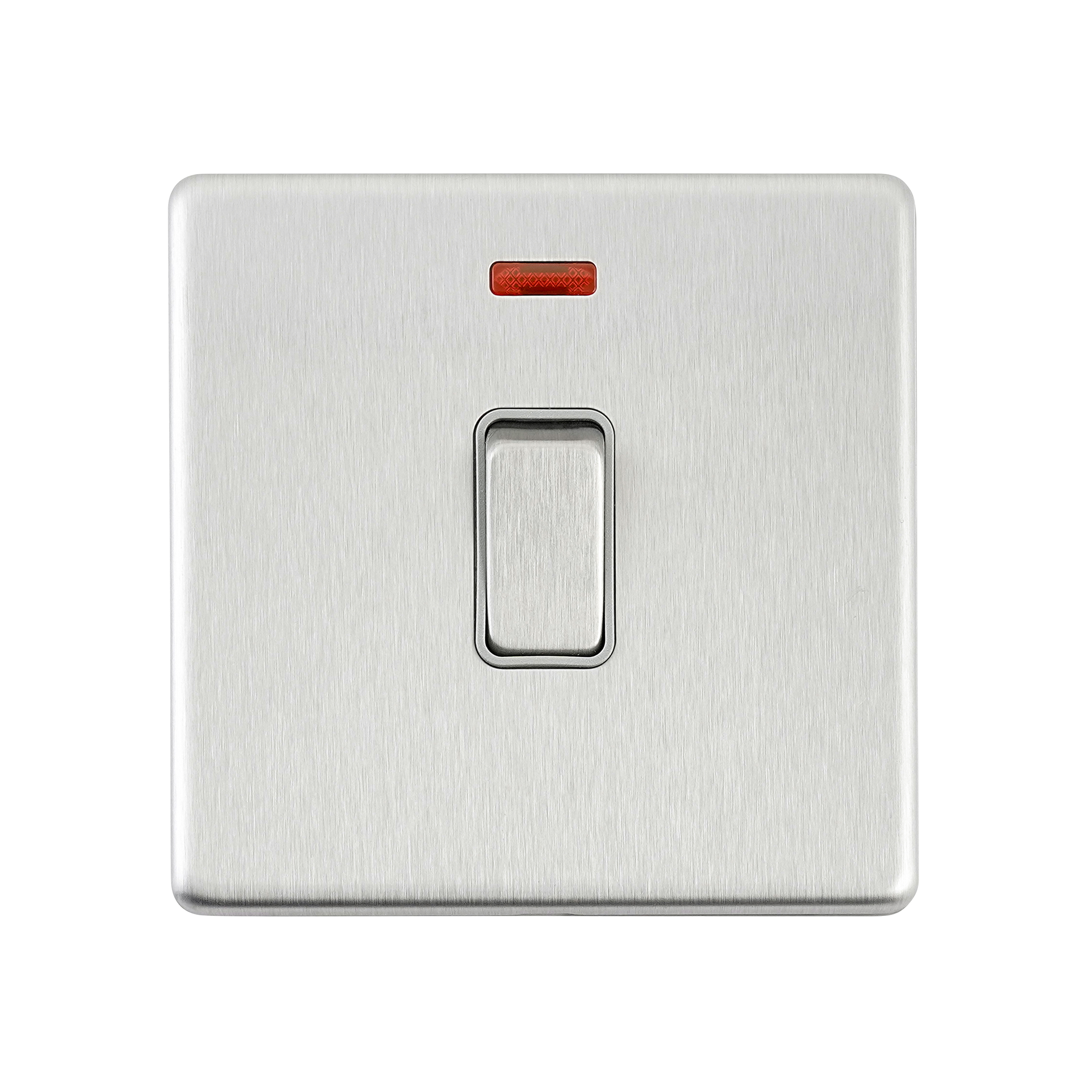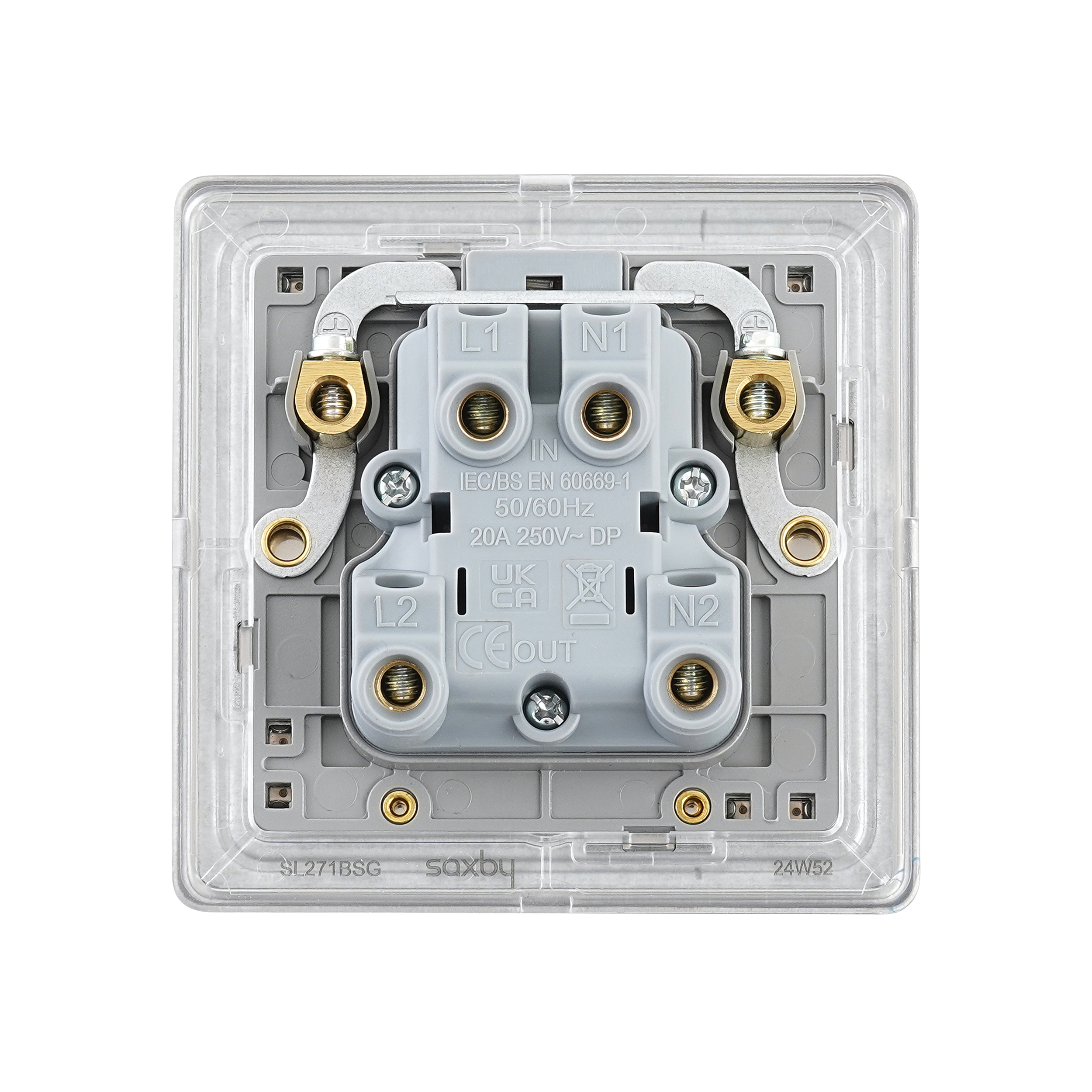 Saxby Electrcial Screwless 20A 1G DP Switch Neon Brushed Steel