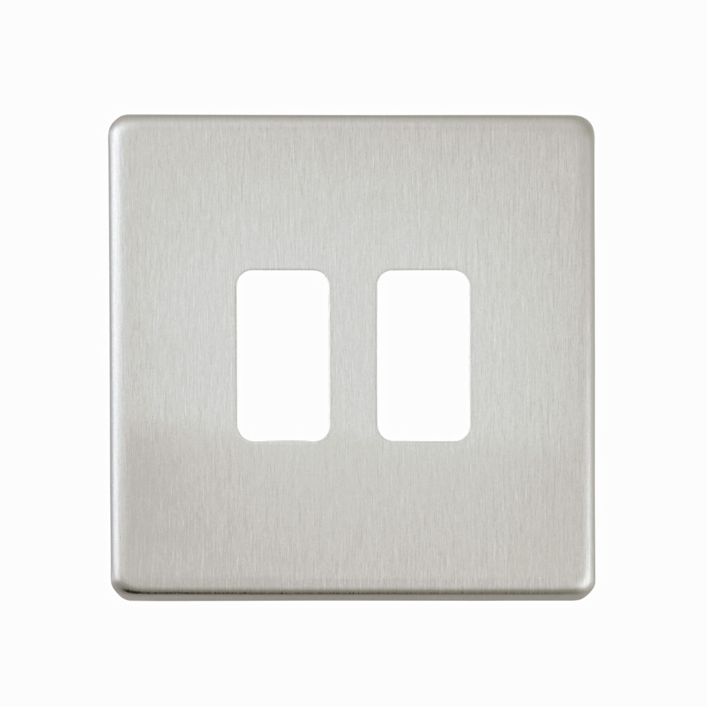 Saxby Electrical Screwless 2G Grid Front Plate Brushed Steel