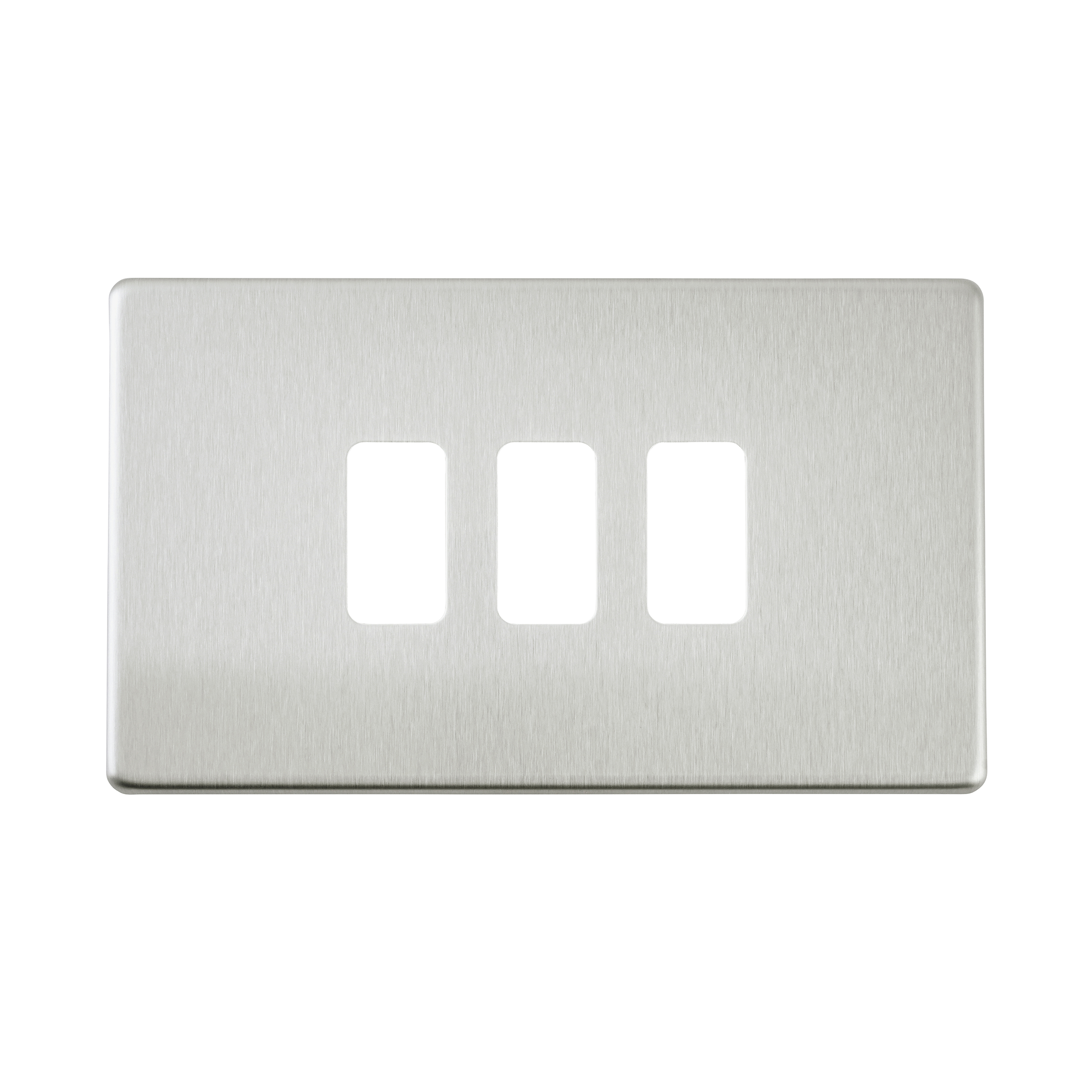 Saxby Electrical Screwless 3G Grid Front Plate Brushed Steel