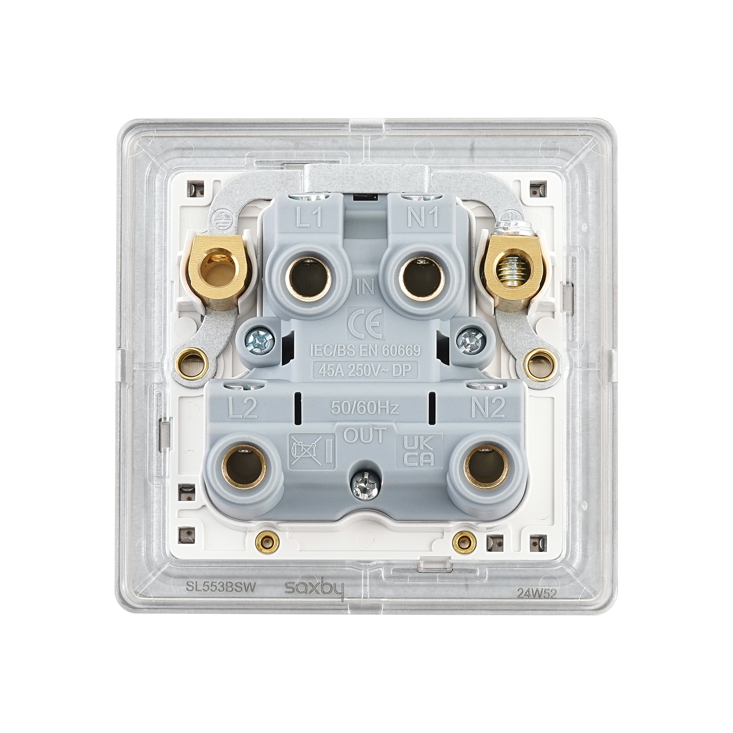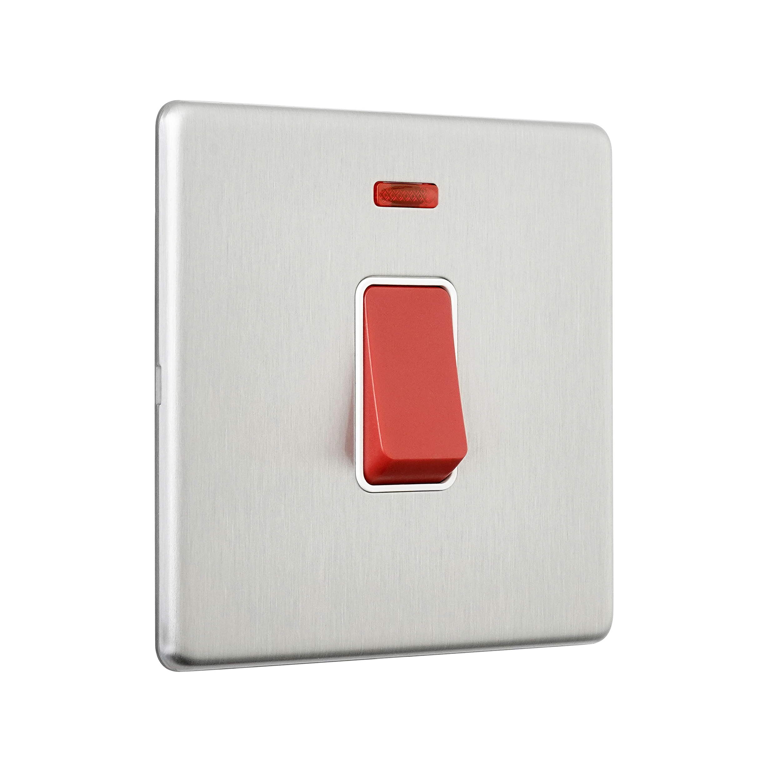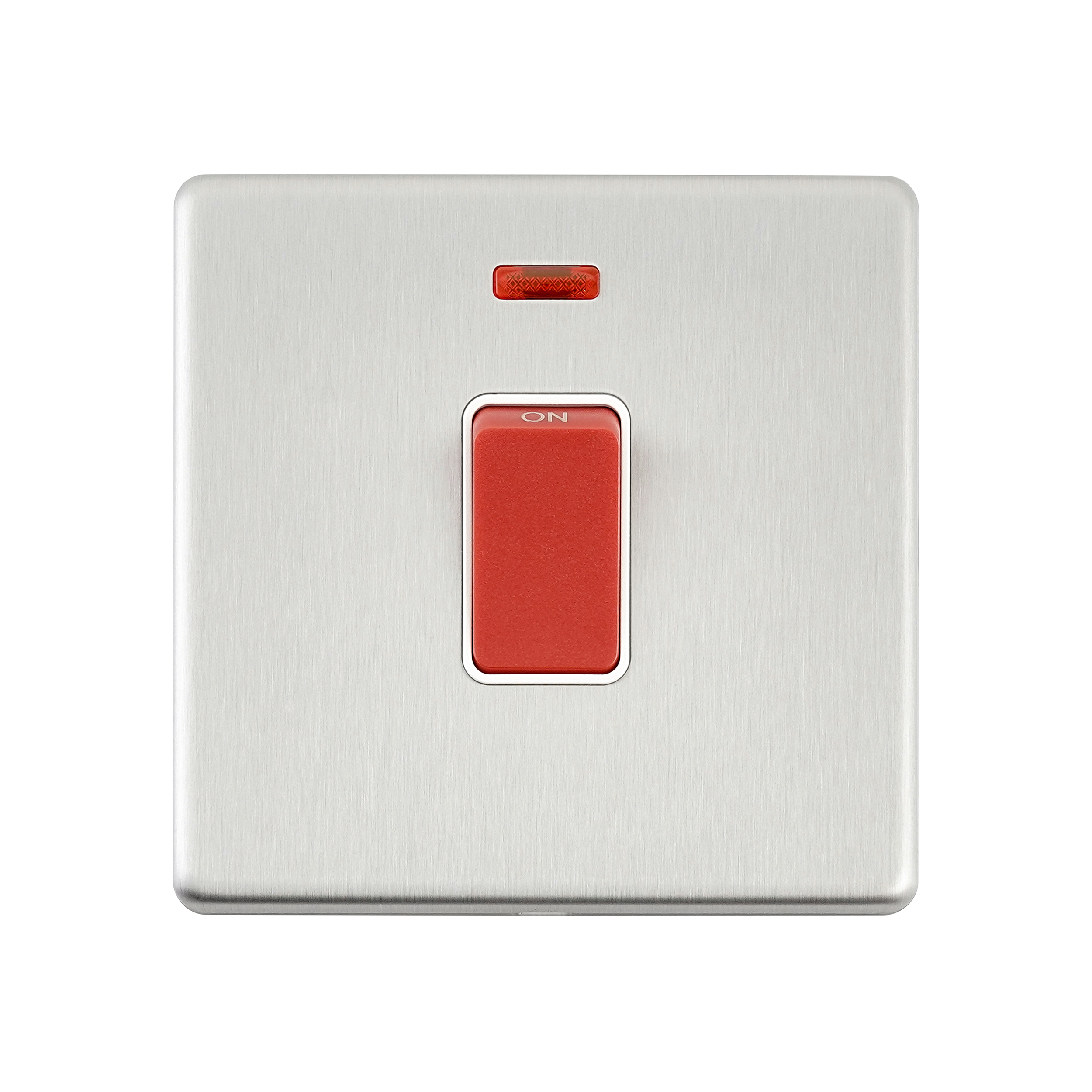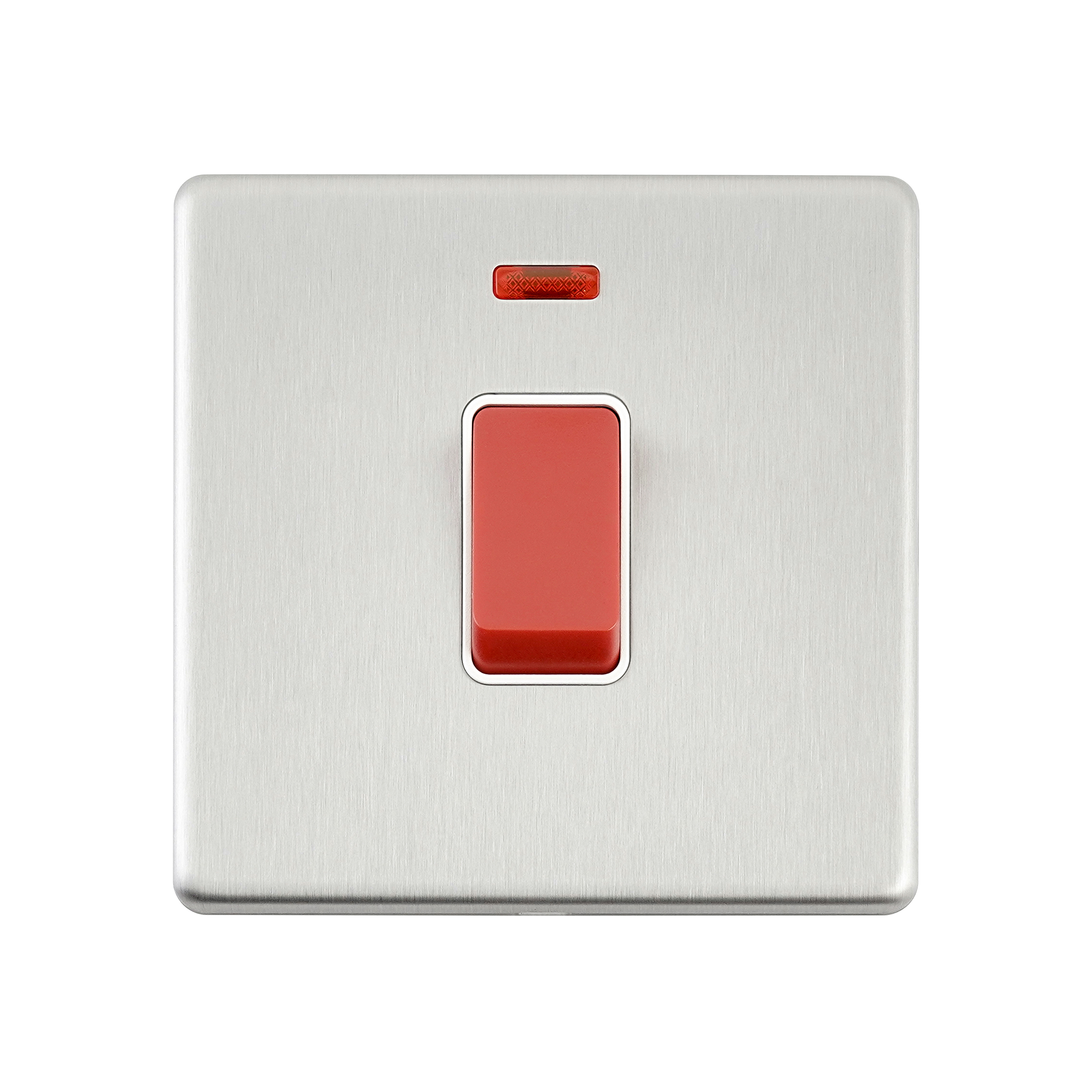 Saxby Electrcial Screwless 45A 1G DP Switch Neon Brushed Steel