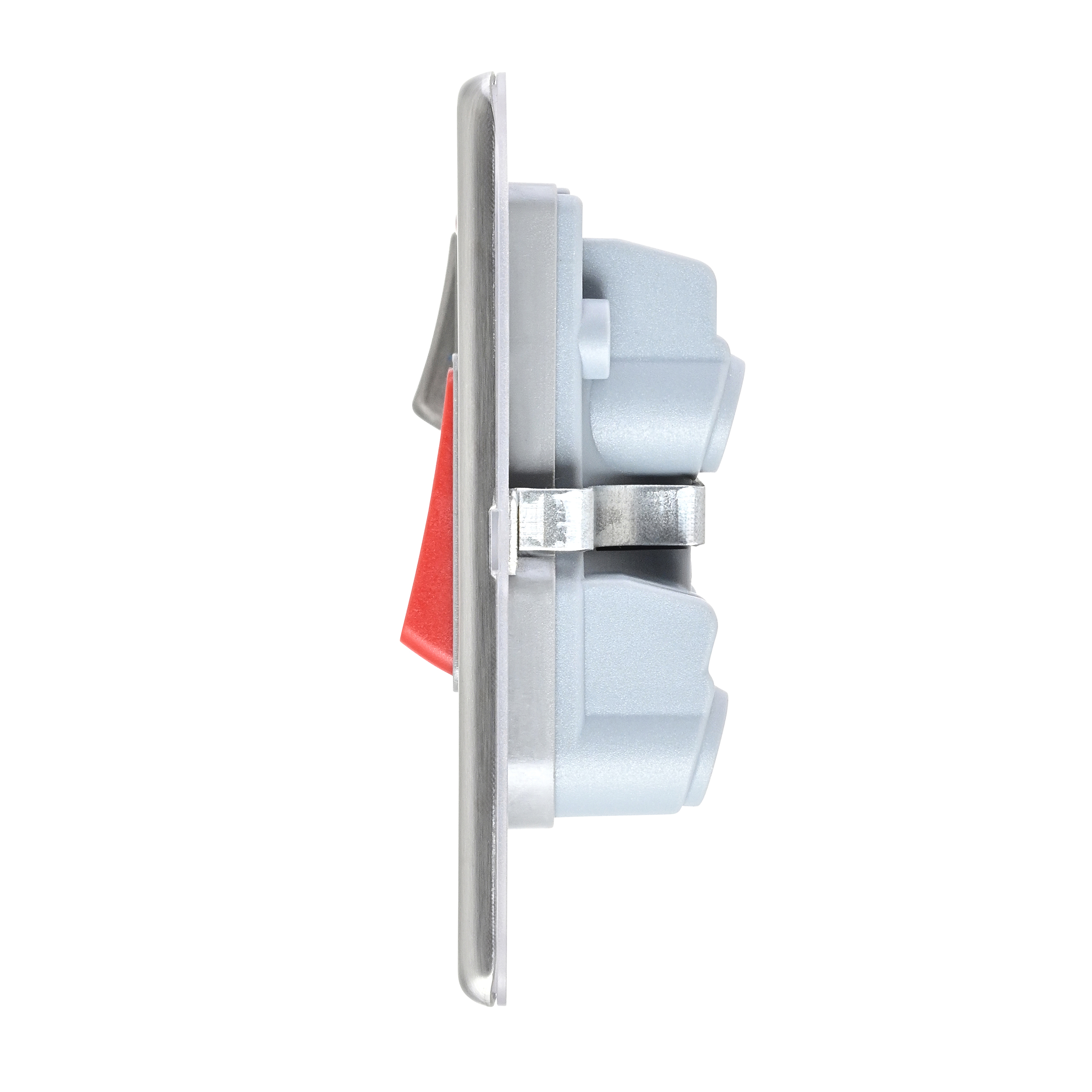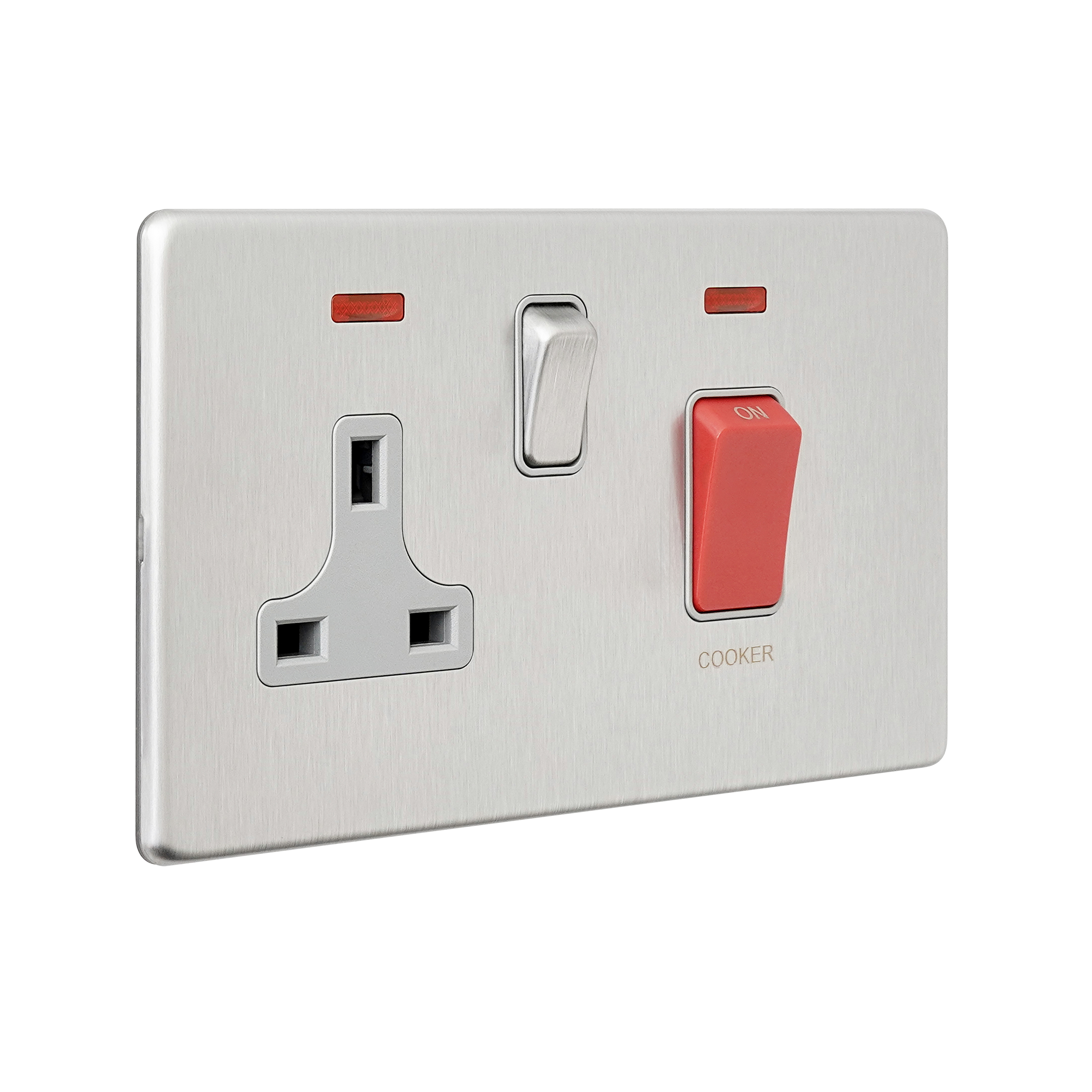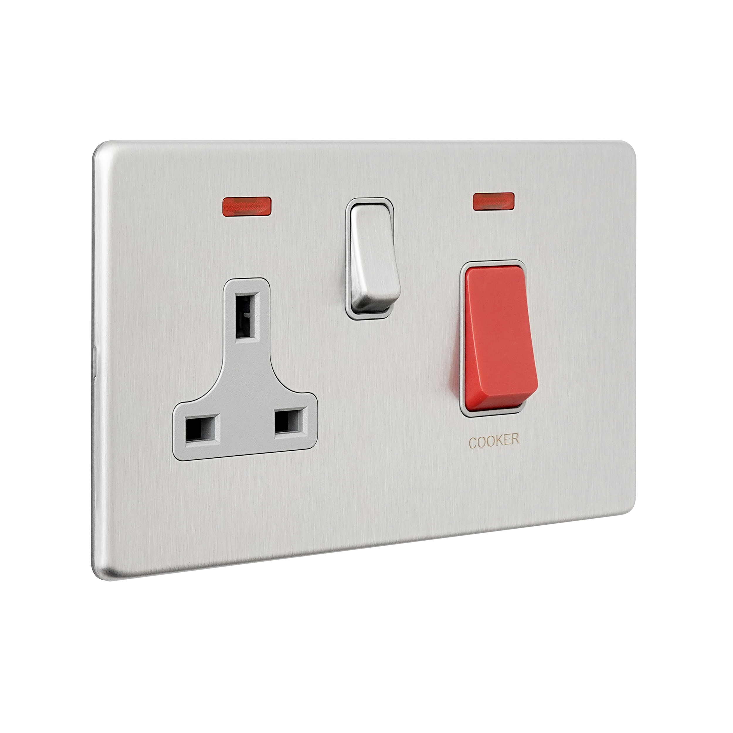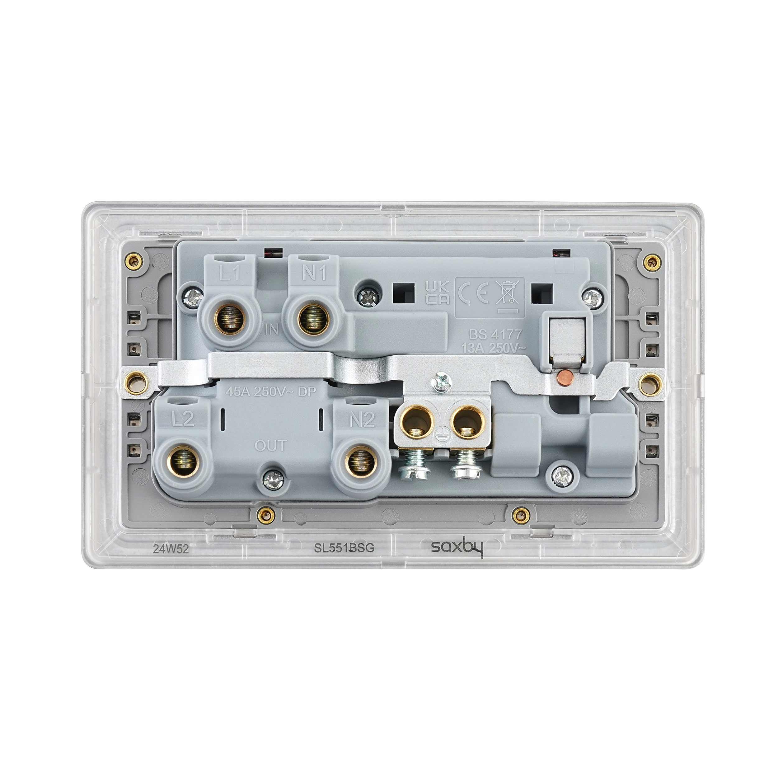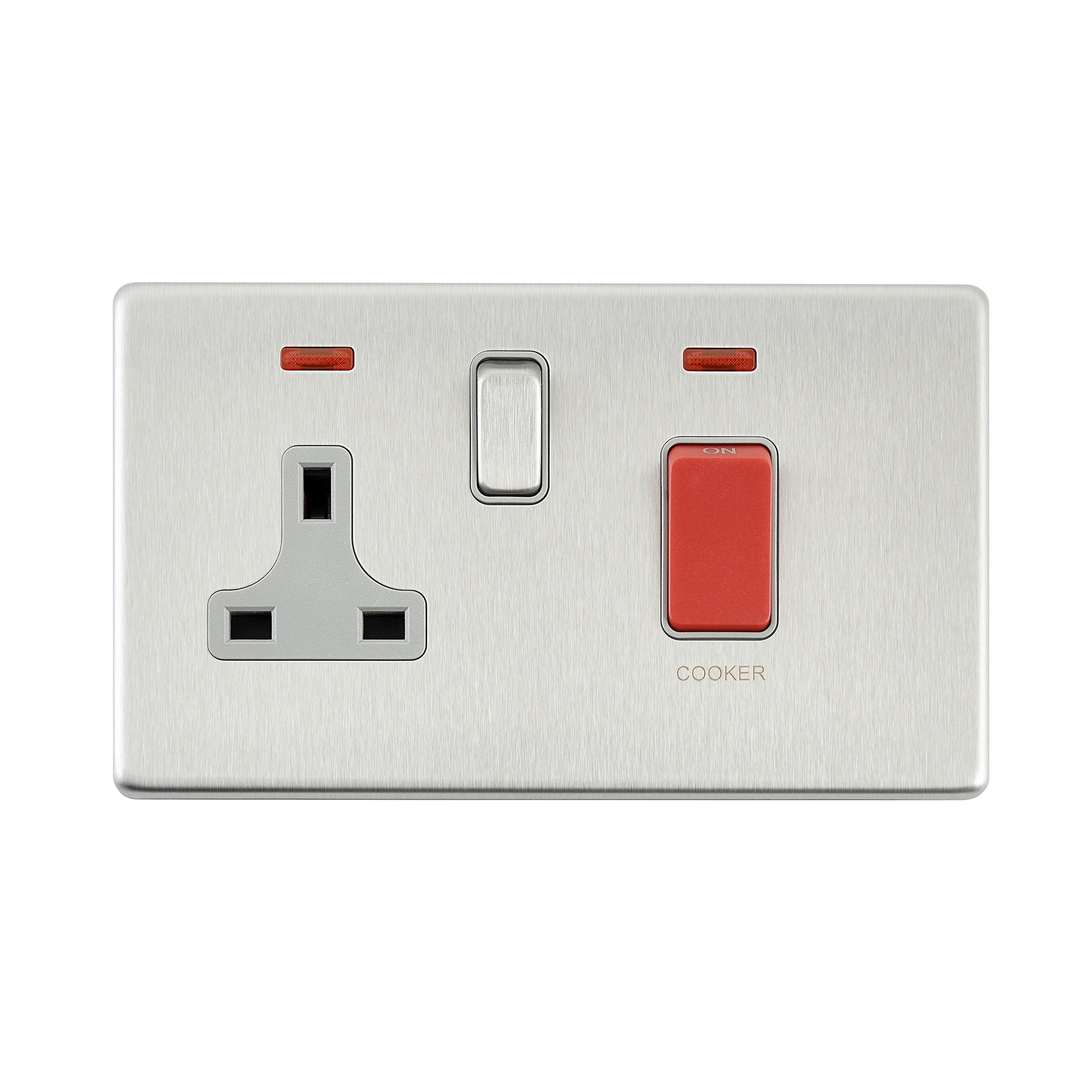 Saxby Electrcial Screwless 45A DP Cooker Switch 13A Socket Neon Brushed Steel