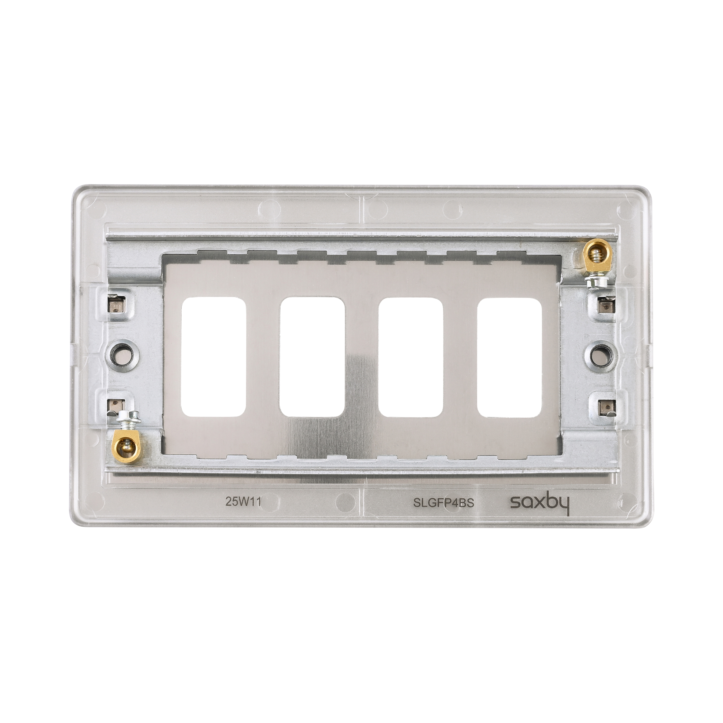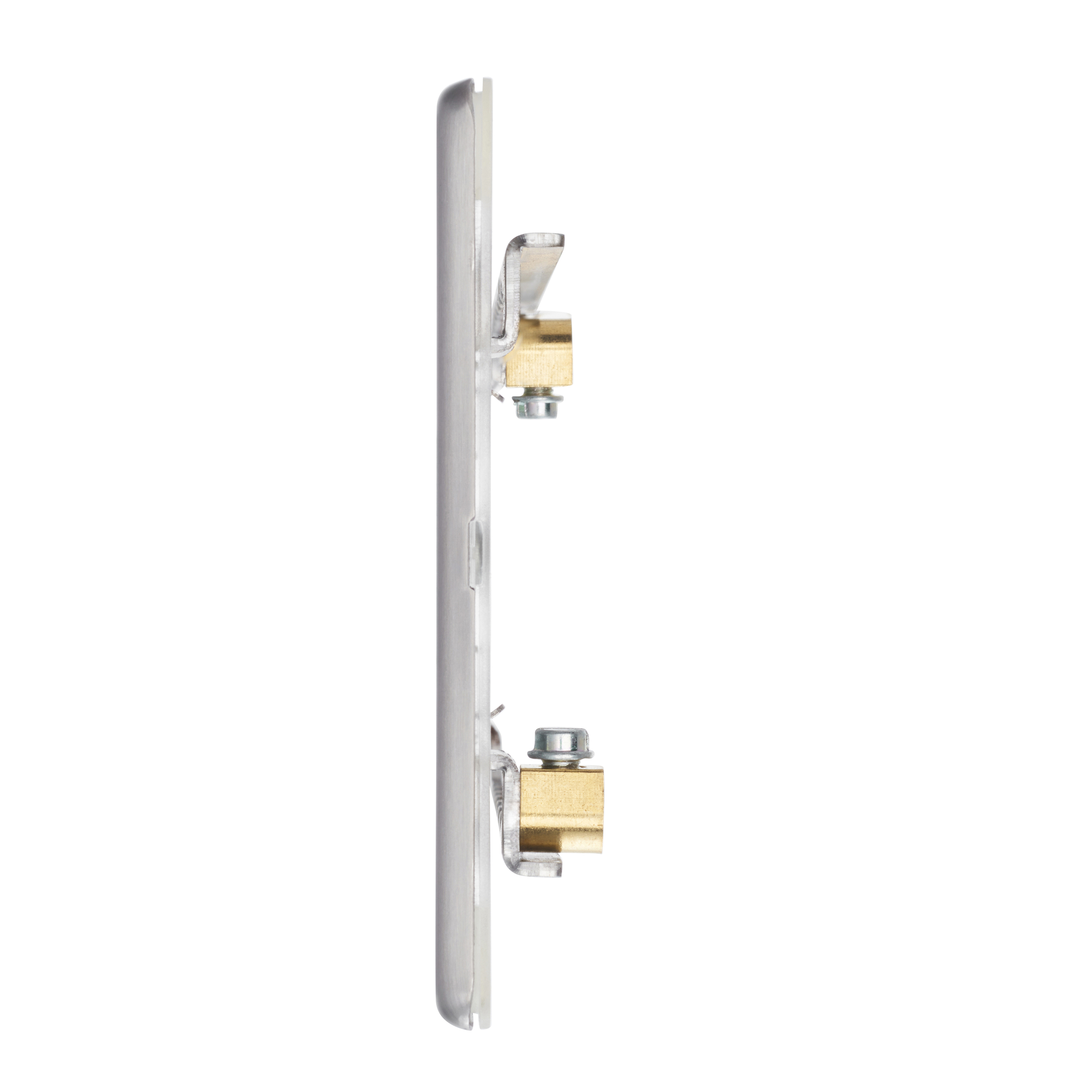 Yolk supplied with every grid plate as standard allowing for quick, easy and hassle free installation. Supplied with fixing screws. No visible plastic around the rockers. Moisture gasket as standard to help prevent any moisture transfer to decorative front plate. The faceplate clips on and off easily due to the four locking points on the rear of the plate making for secure fit.