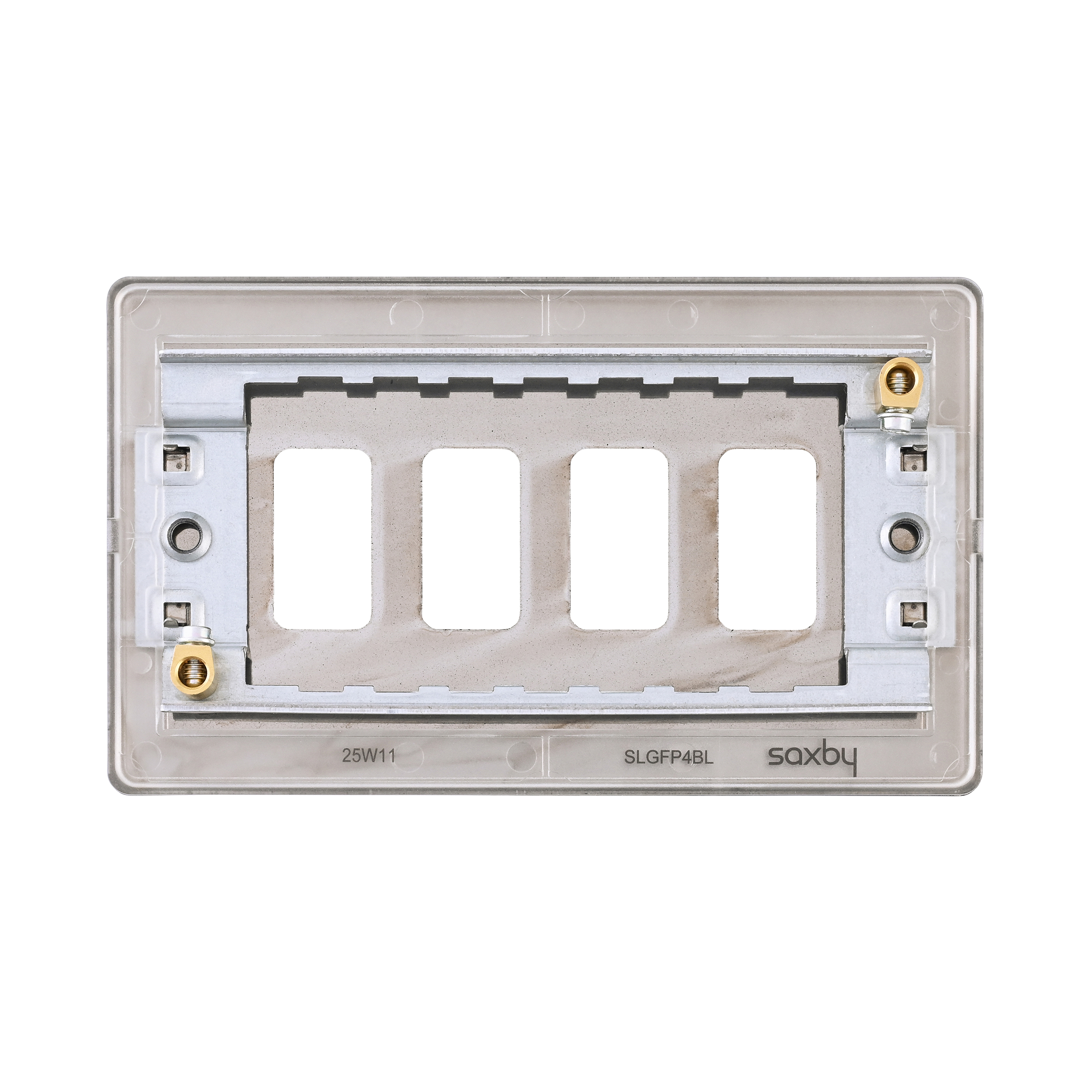 Yolk supplied with every grid plate as standard allowing for quick, easy and hassle free installation. Supplied with fixing screws. No visible plastic around the rockers. Moisture gasket as standard to help prevent any moisture transfer to decorative front plate. The faceplate clips on and off easily due to the four locking points on the rear of the plate making for secure fit.