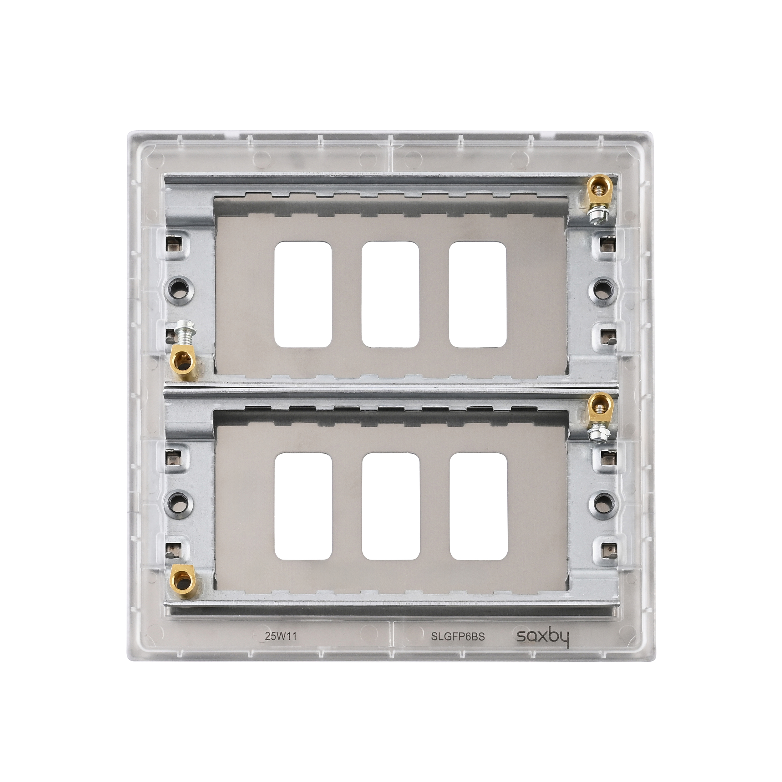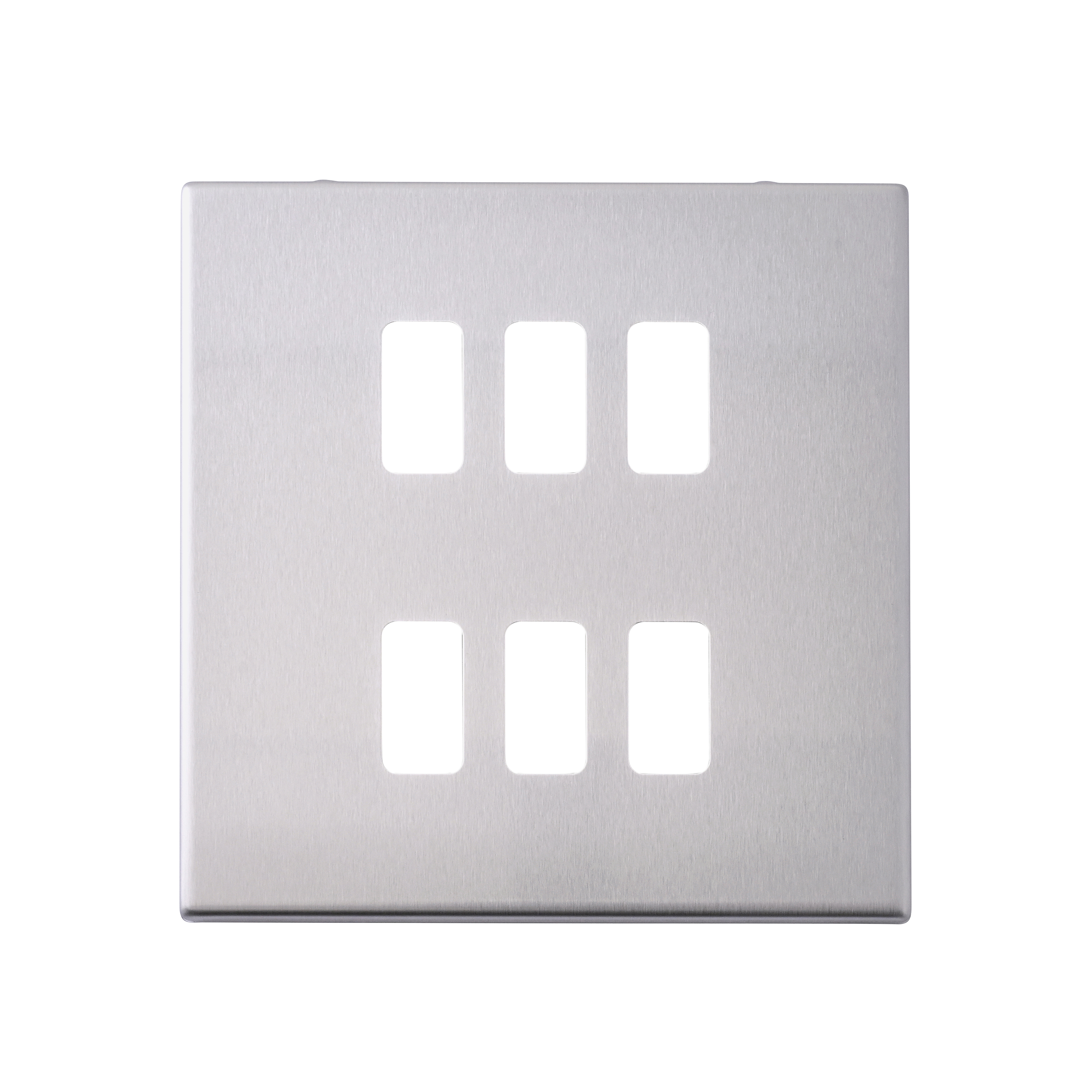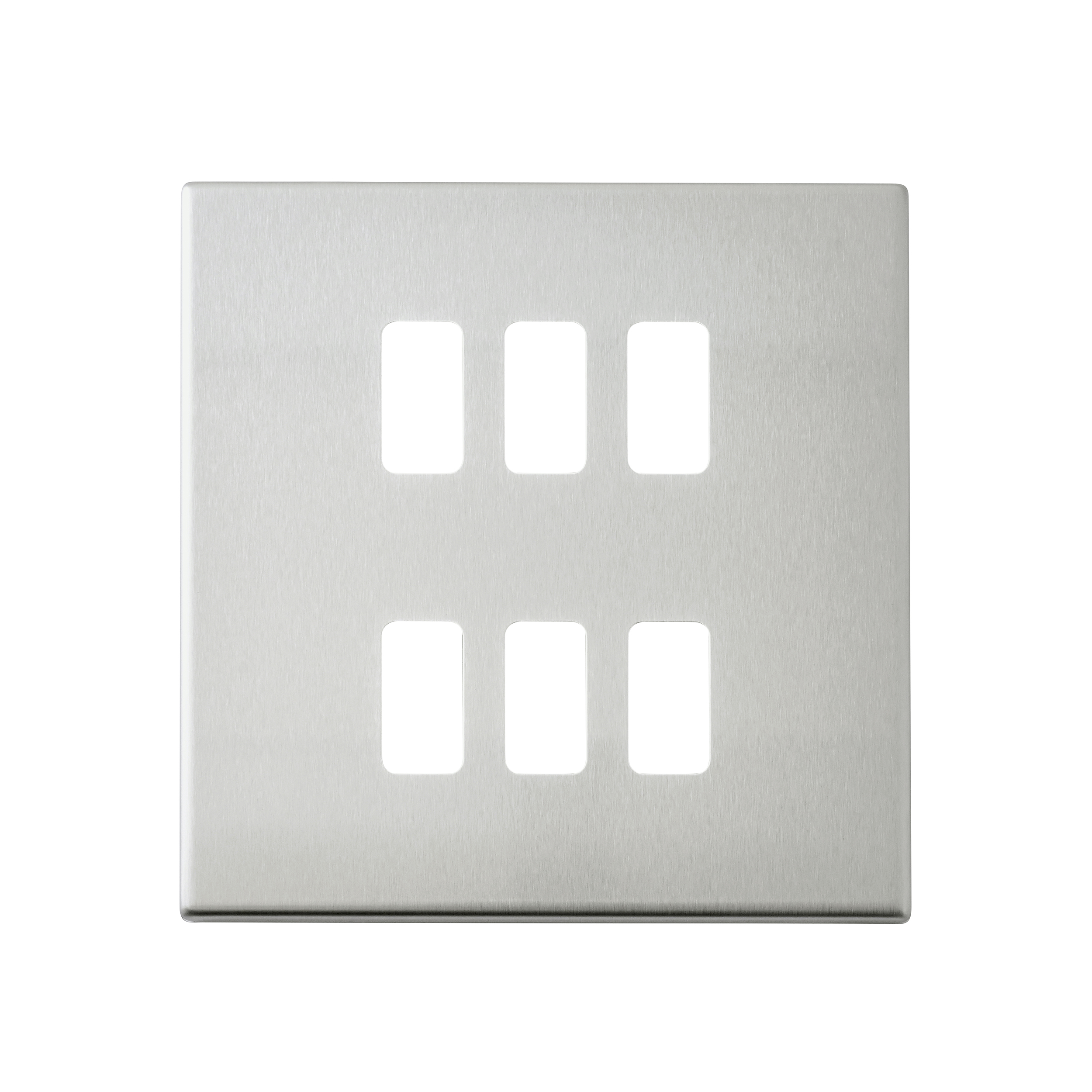 Saxby Electrical Screwless 6G Grid Front Plate Brushed Steel