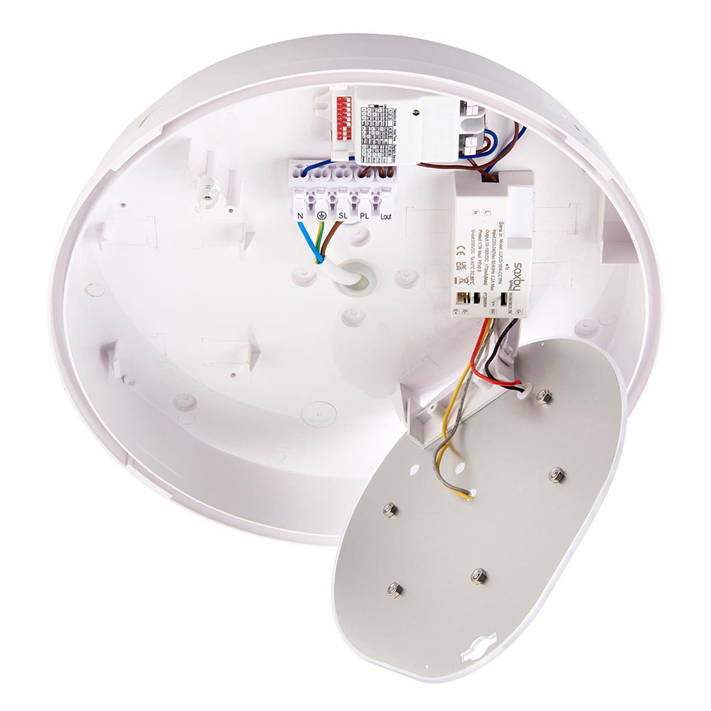 Saxbys signature bulkhead has just been upgraded! Introducing HeroULTRA; Available in Standard, Emergency and Microwave variants. Supplied with white bezel as standard but customisation is available with chrome and black options, as well as eyelids in white and black. Outstanding illumination is provided thanks to its high-performance LED chips and the HeroULTRA boasts an impressive output of 1800 lumens at an incredible efficiency of 120 lumens per watt. The CCT Switch allows you switch between 2700K/3000K/4000K/5000K/6000K colour temperatures and has 4 conduit entries on the side with a push-to-lock bezel. The fast-fit hinged gear tray and push-fit connector makes it perfect for efficient, hassle-free installation. The IP65, slim profile and IK10 rating further ensure it is robust enough for public spaces indoors and outdoors