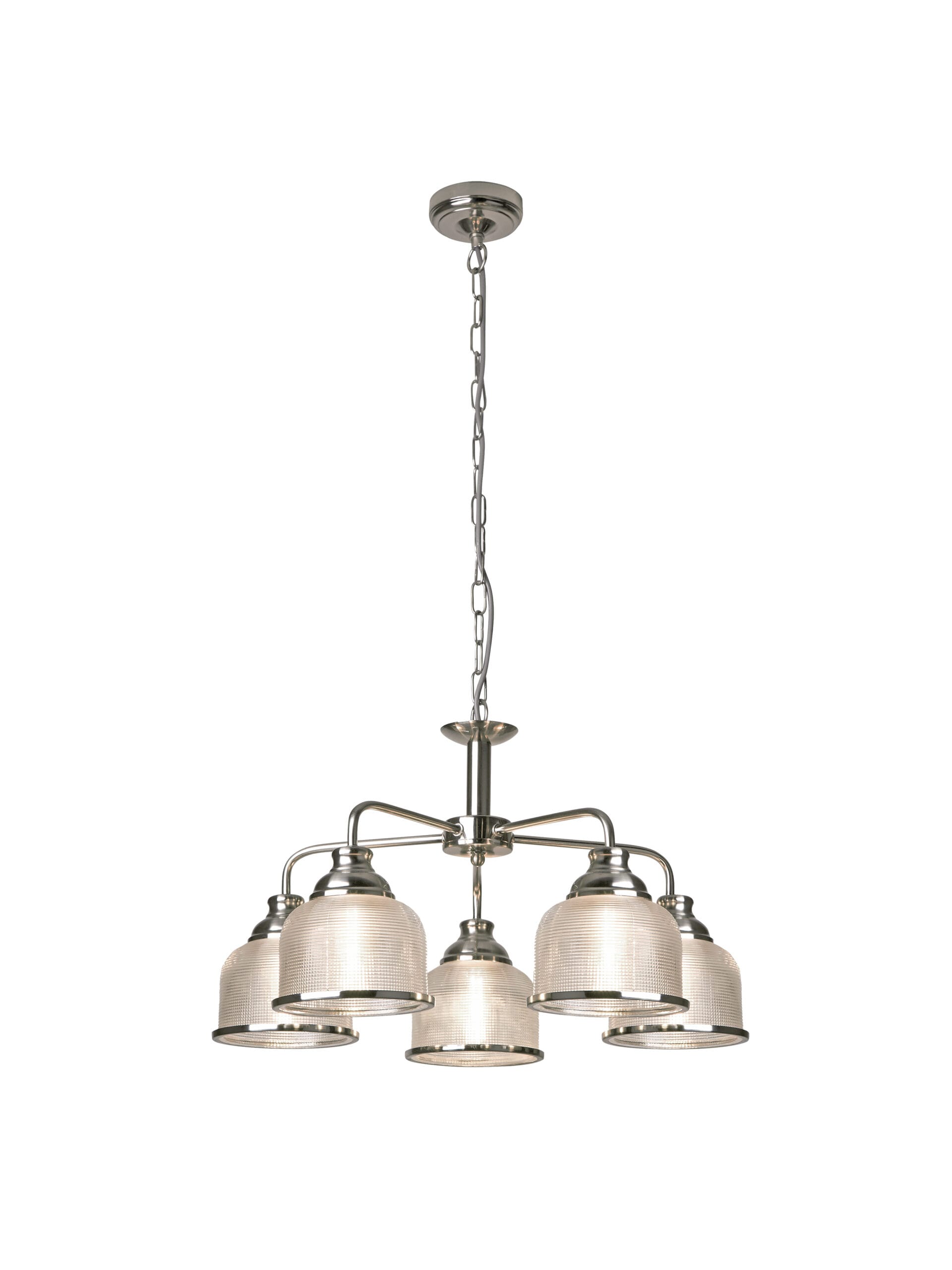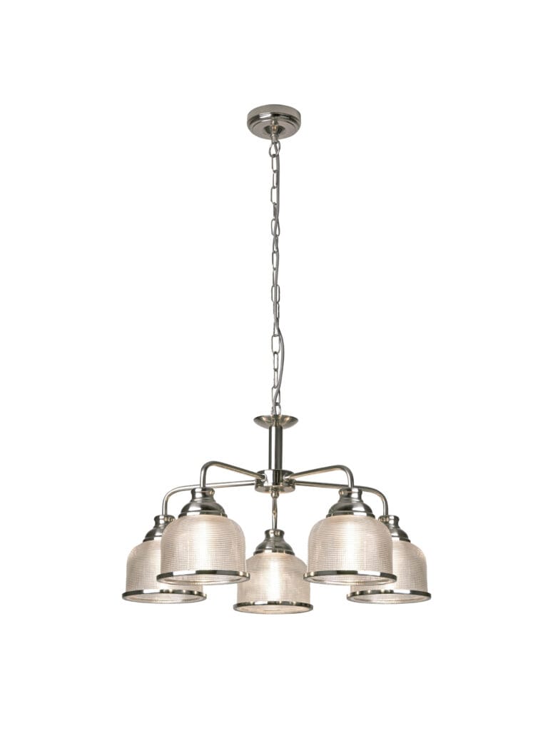Searchlight Bistro II 5Lt Pendant Satin Silver & Holophane Style Glass