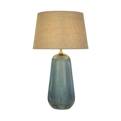 Searchlight Cameo 1Lt Table Lamp Blue Glass with Natural Linen Shade