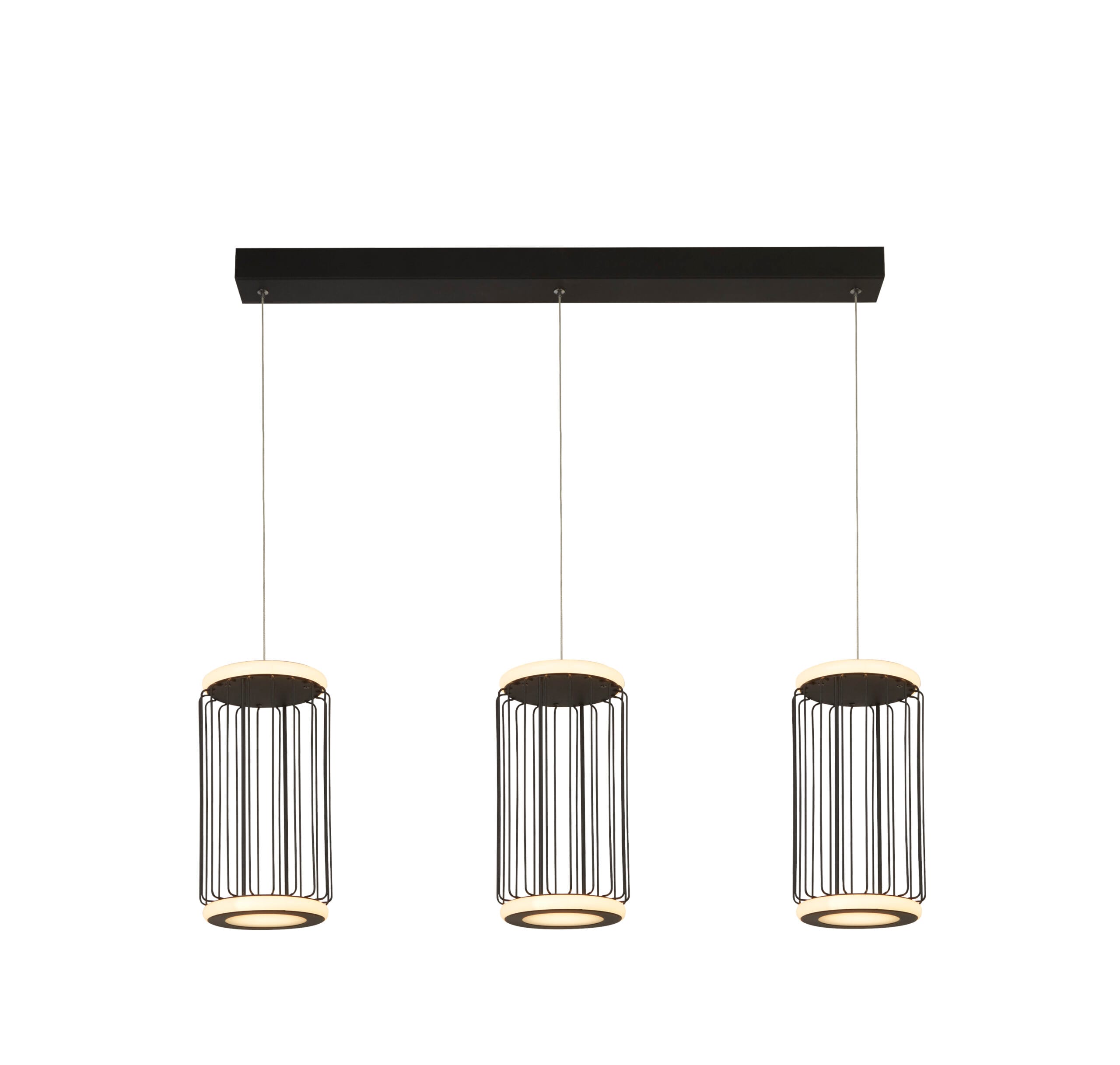 Searchlight Circolo 3Lt Cage Bar Pendant Black Metal & White Silicon