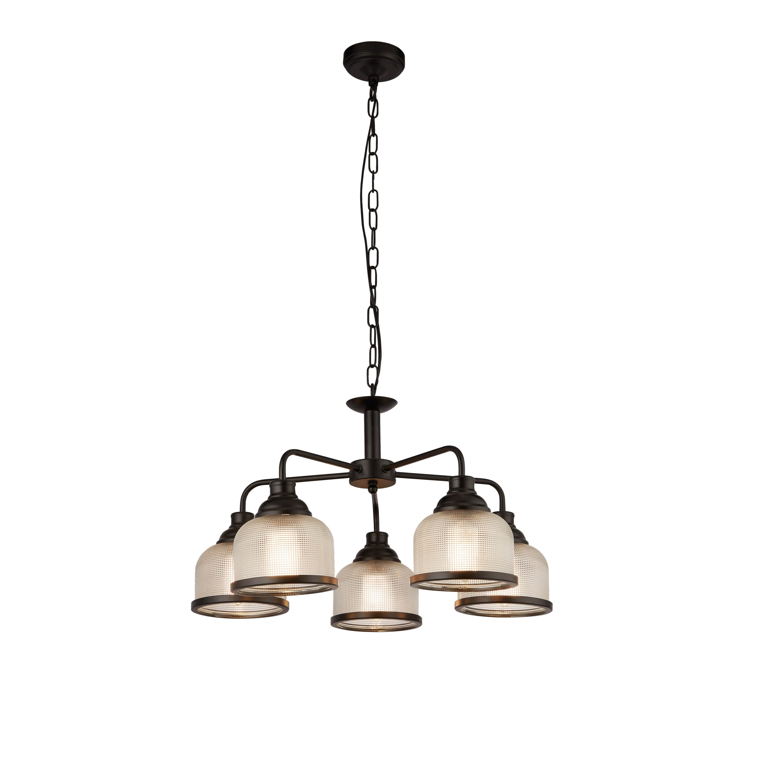 Searchlight Highworth 5Lt Pendant Black Metal & Holophane Style Glass