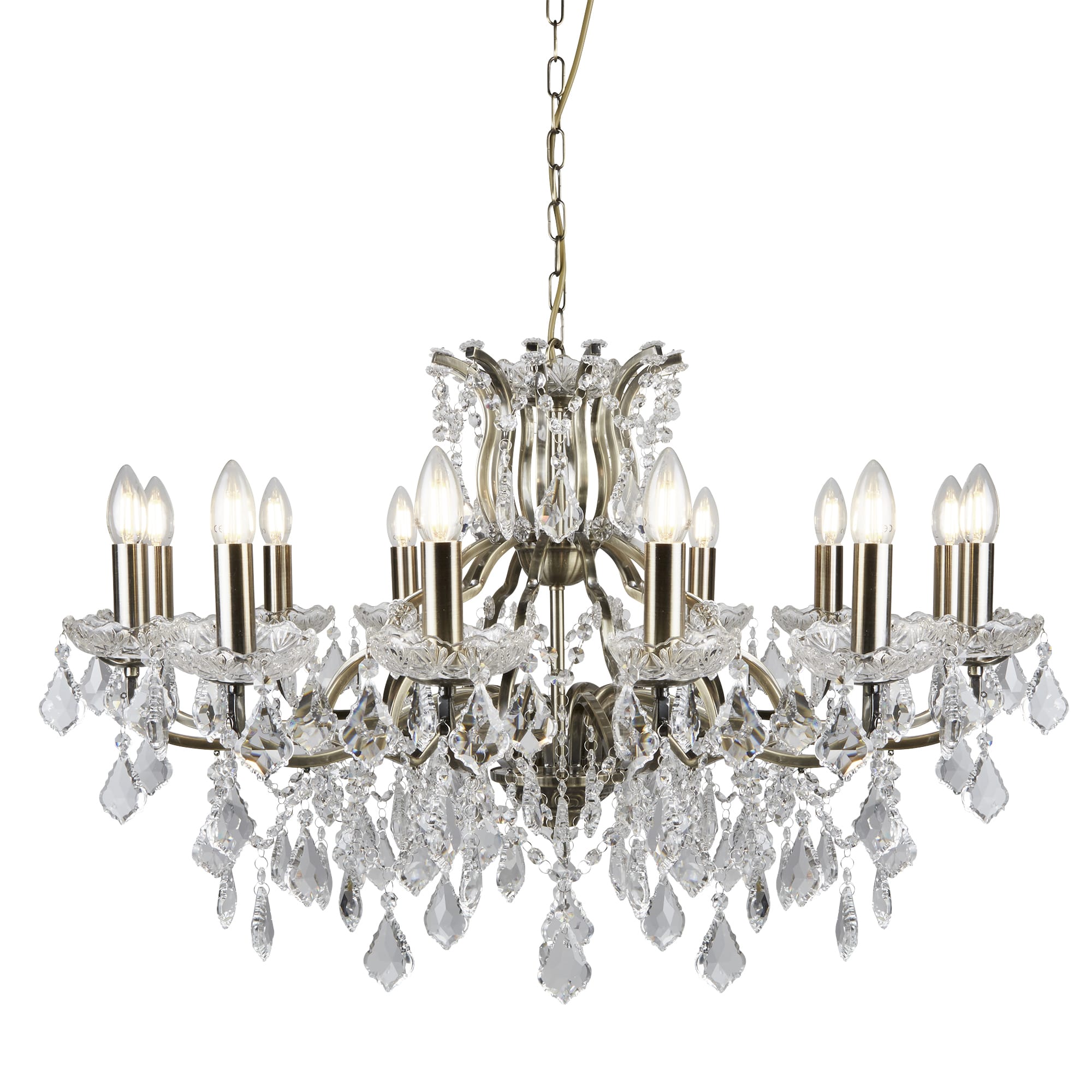 Searchlight Paris 12Lt Chandelier Antique Brass Metal & Clear Crystal