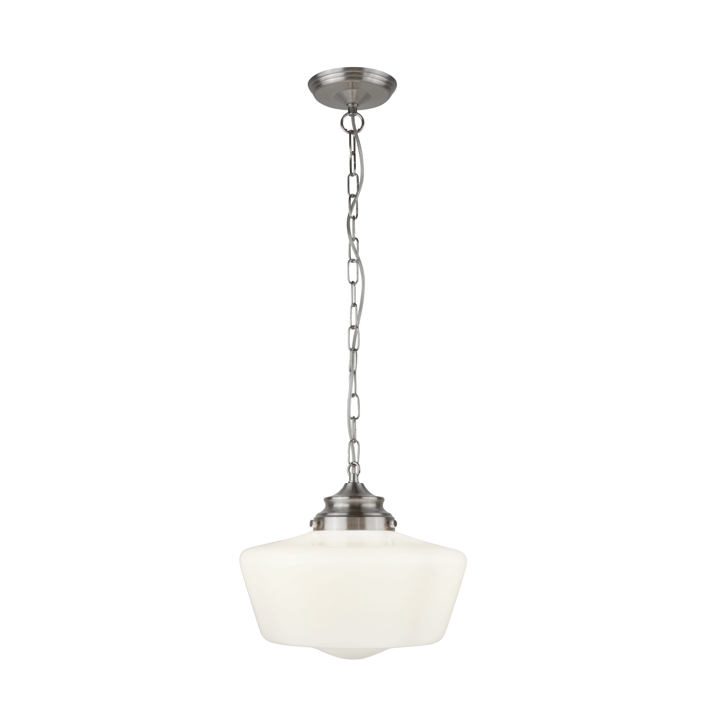 Searchlight School House Pendant Satin Silver Metal & Opal Glass