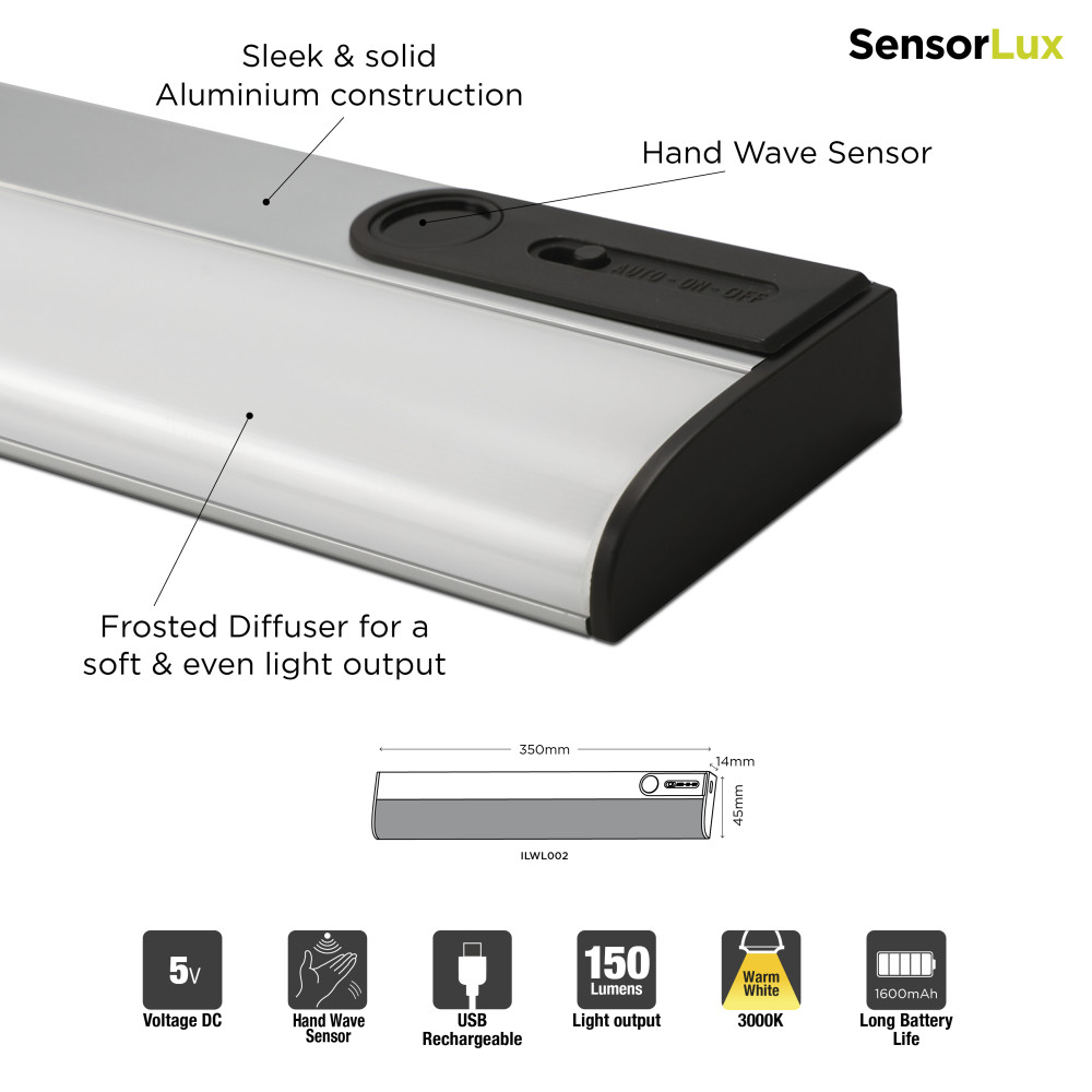 Integral Sensorlux Cabinet Wardrobe Light 350Mm 150Lm 3000K With Ir Hand Wave Sensor Dimmable