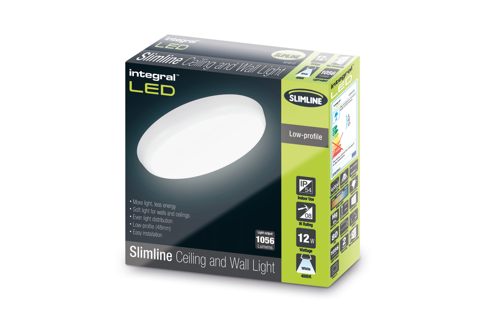 Integral Slimline Ceiling/Wall Light 250Mm Dia IP54 1056Lm 12W 4000K Non-Dimm White 100Lm/W