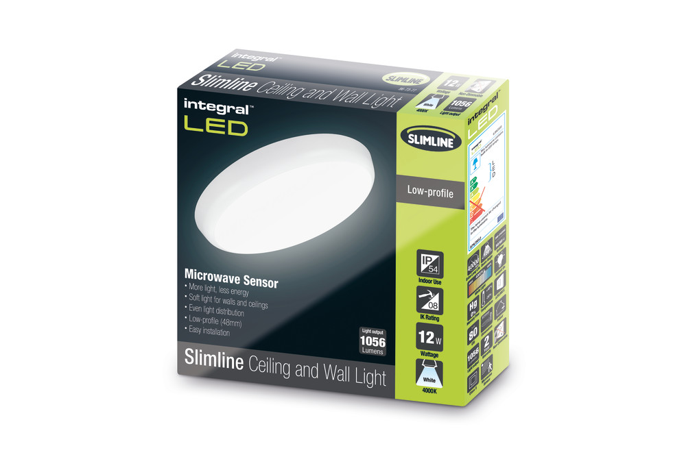 Integral Slimline Microwave Sensor 250Mm Dia IP54 1056Lm 12W 4000K Non-Dimm White
