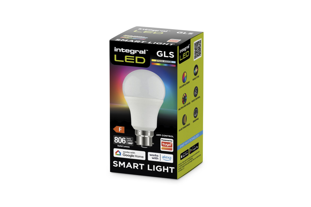 Integral Smart Gls Bulb B22 806Lm 8.5W Rgbw 2700K To 6500K Tuya Control 220 Beam Frosted