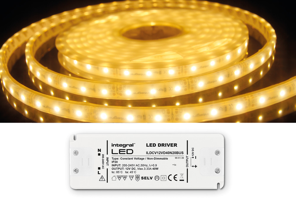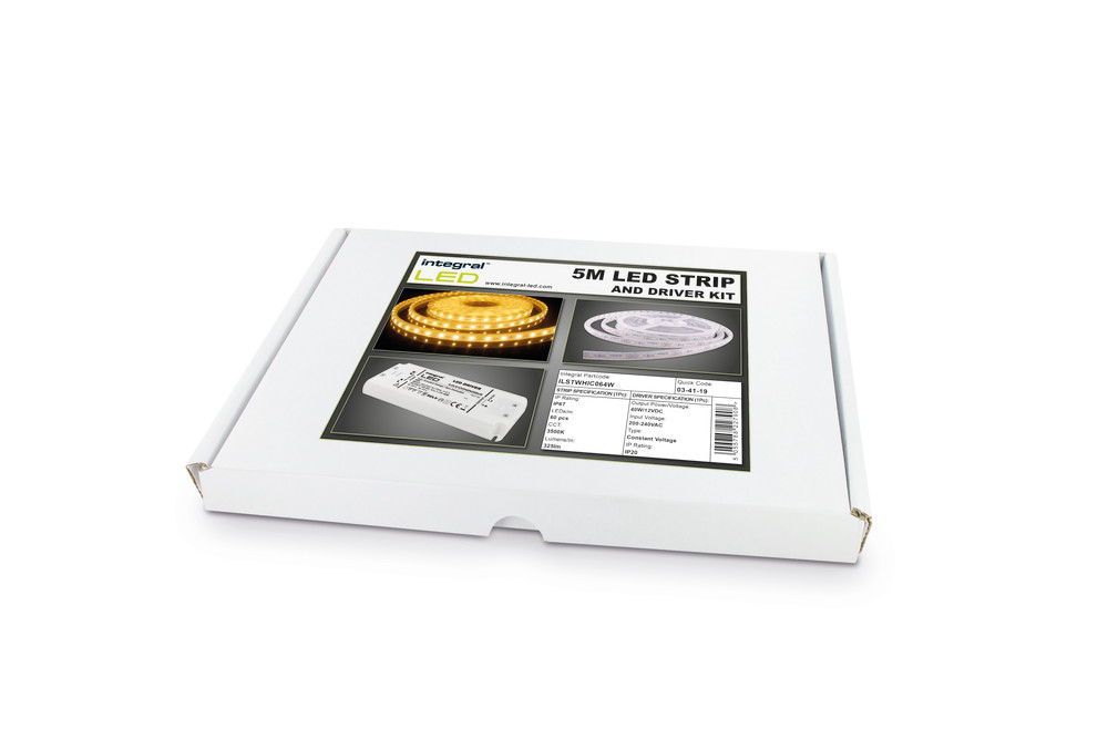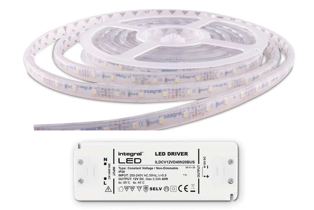 Integral Strip And Driver Kit IP67 5M 3500K 12V 6W/M 325Lm/M 60Led/M 10Mm With 12V IP20 50W Driver