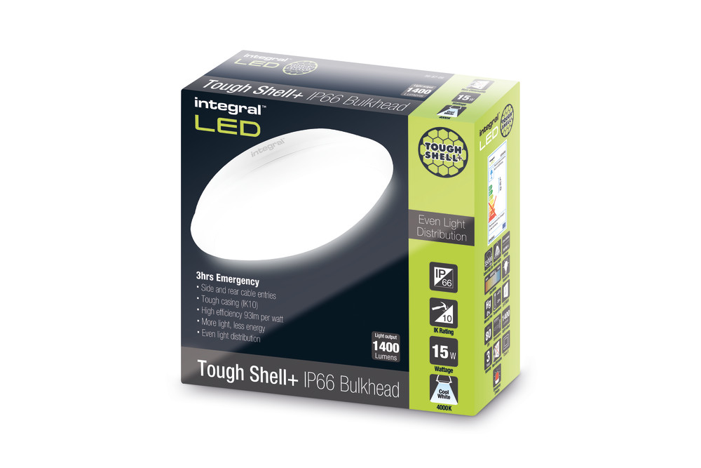 Integral Tough Shell Bulkhead Emergency 3Hr 308Mm Dia IP66 1400Lm 15W 4000K 110 Beam Non-Dimm White 93Lm/W