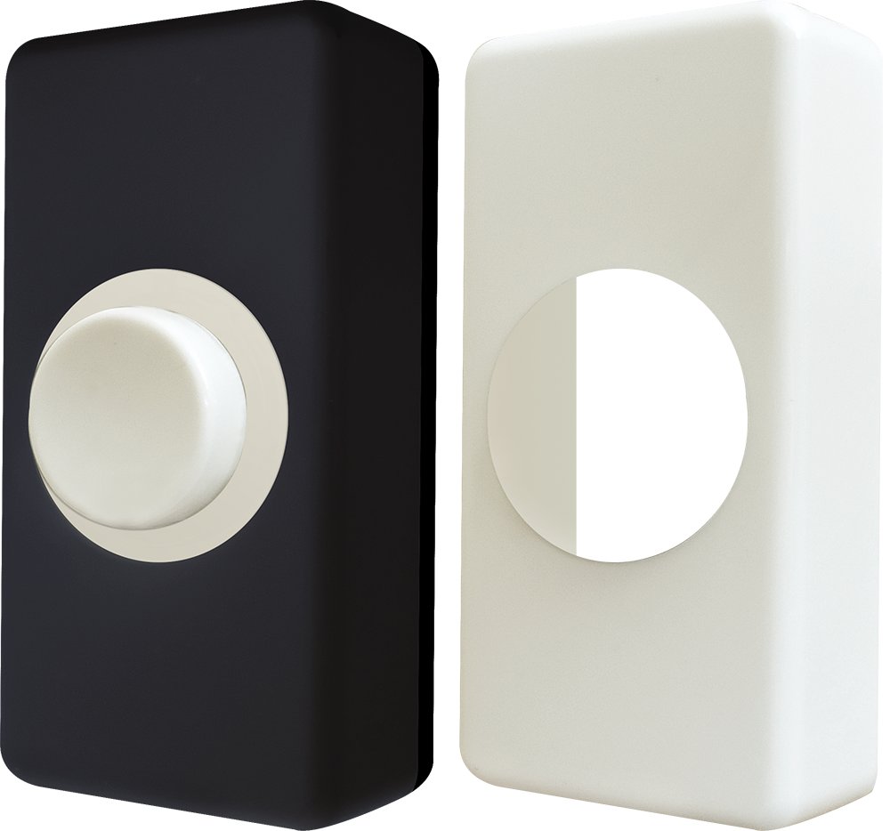 Interchangeable black or white wired surface mounted bell push to reduce stock requirements, fixing connections concealed at rear of fitting